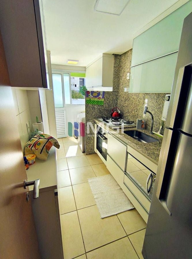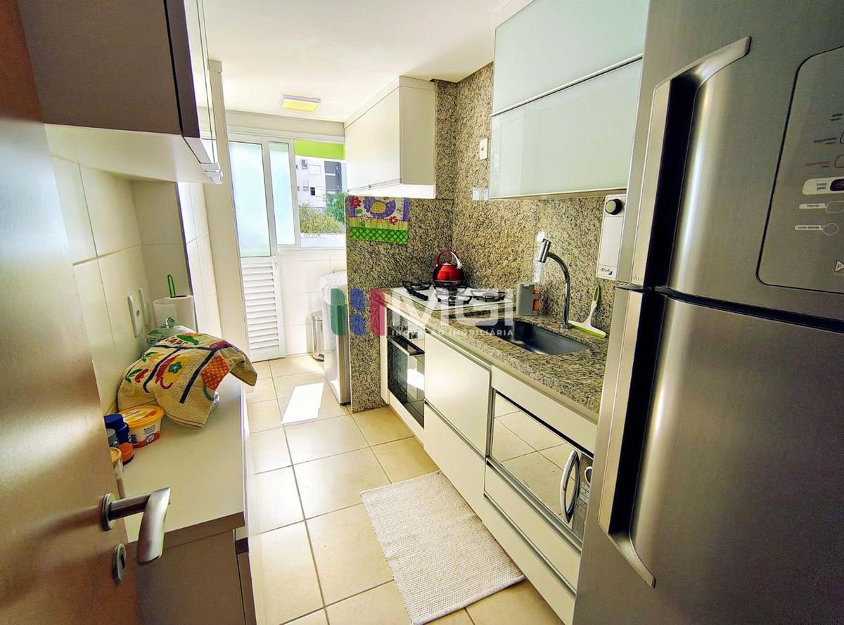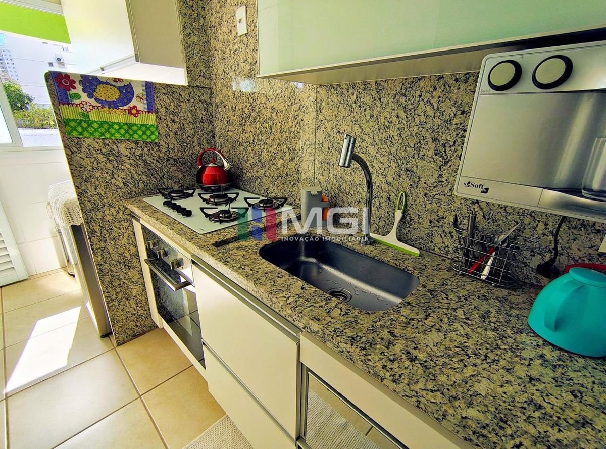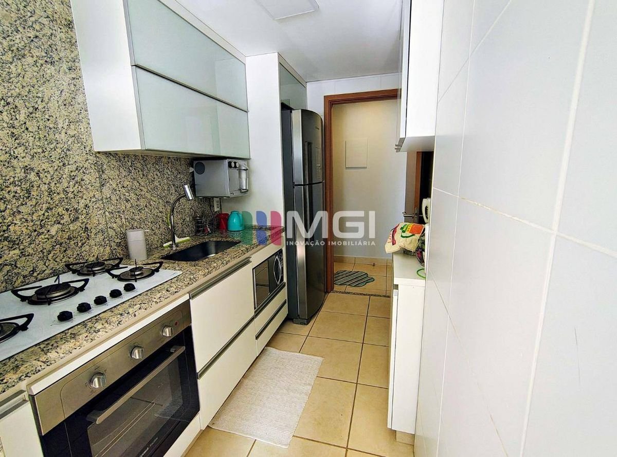 A cozinha é rica em armários, equipada com fogão cooktop, forno elétrico embutido e filtro de água, além de área de serviço com armários.