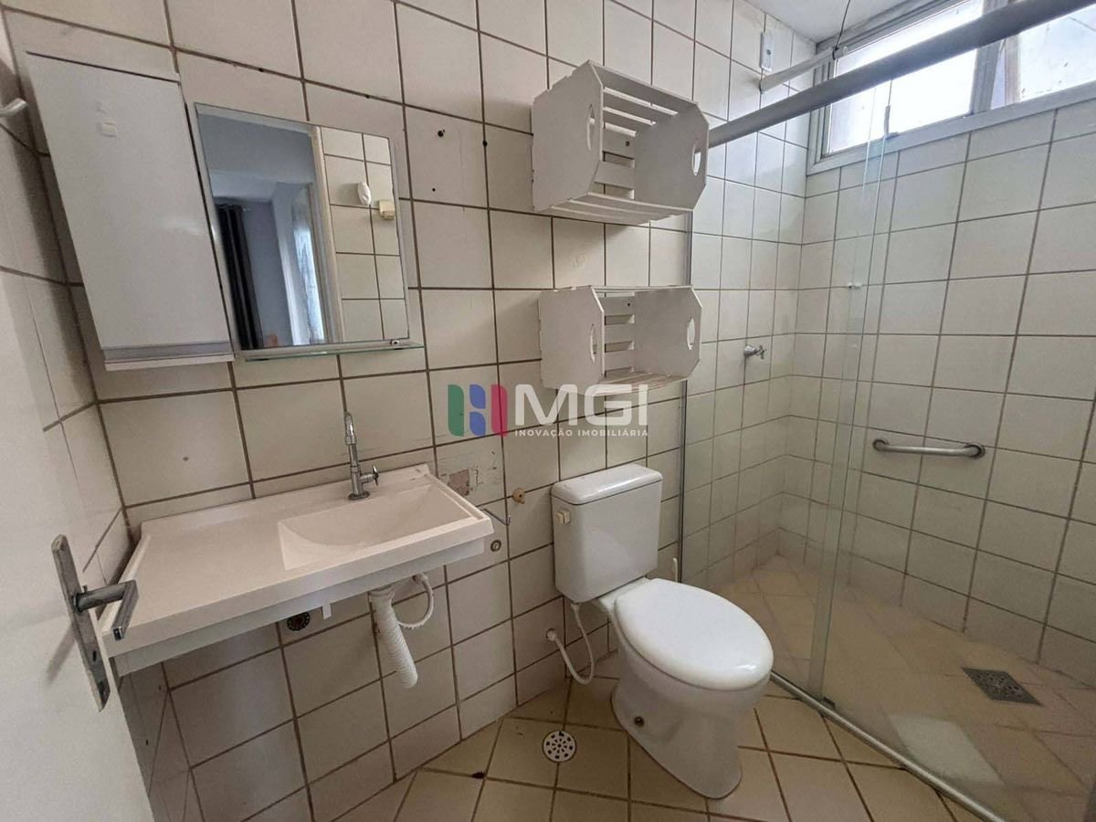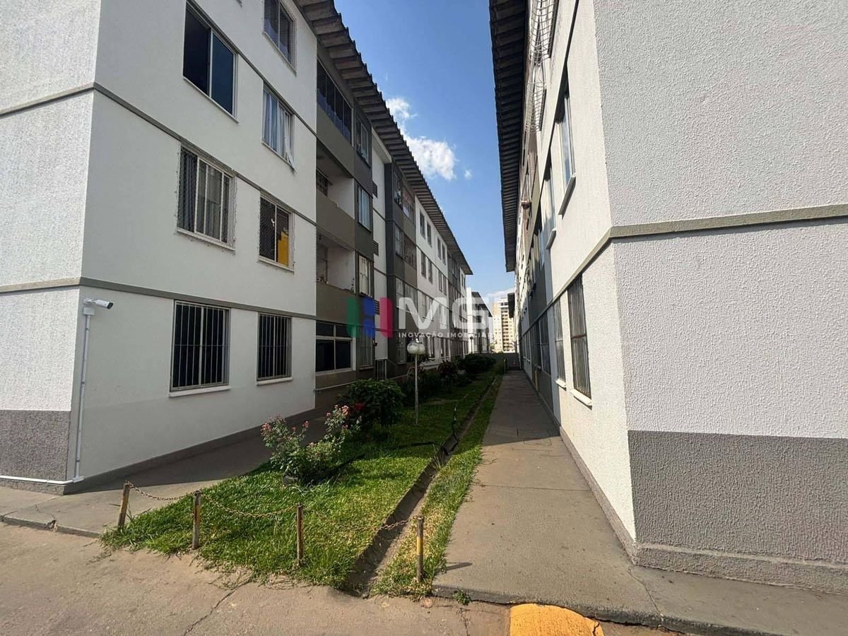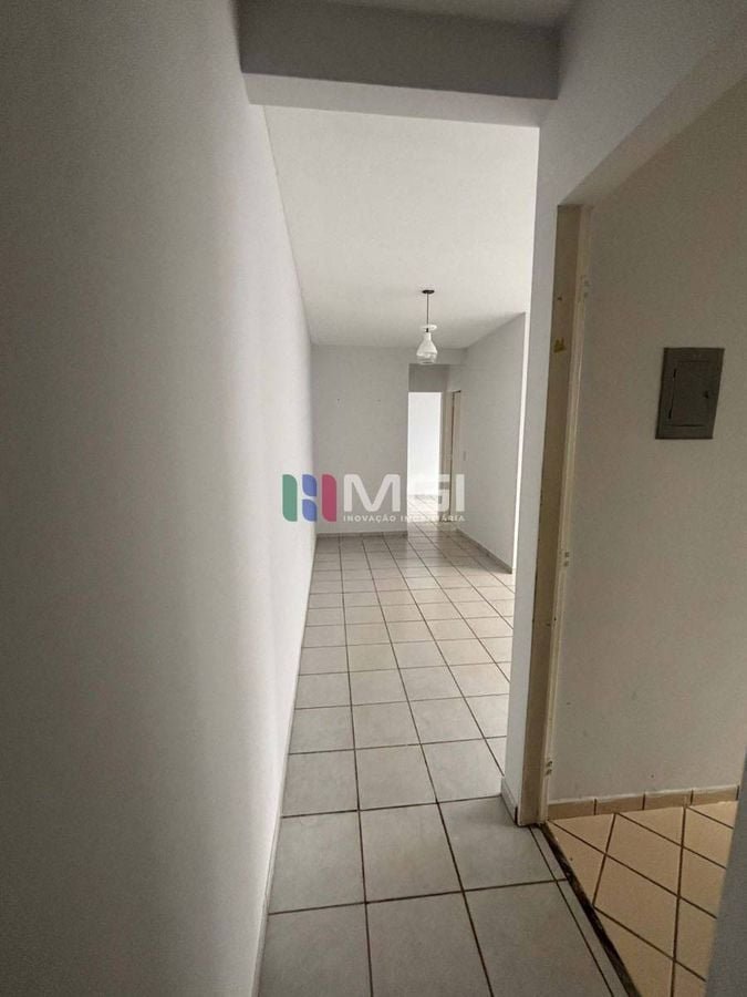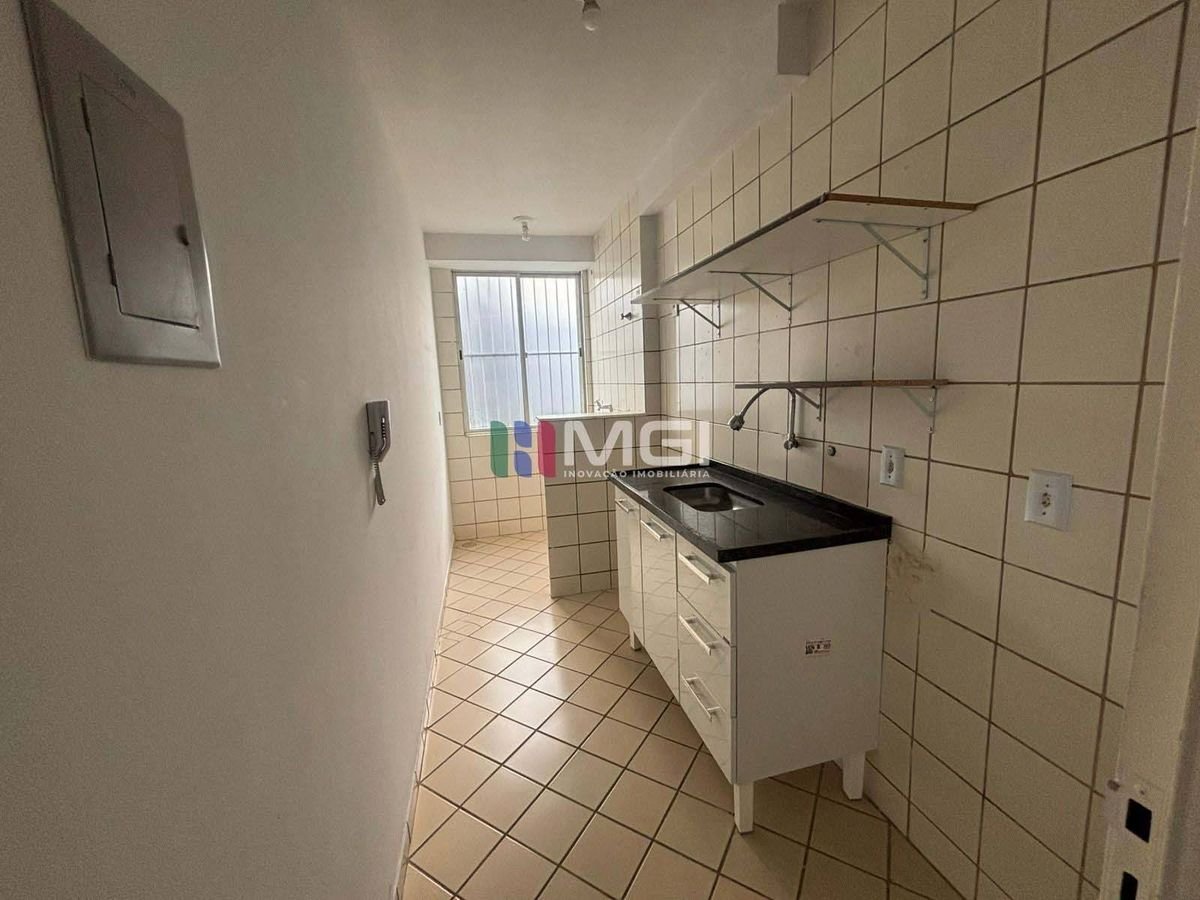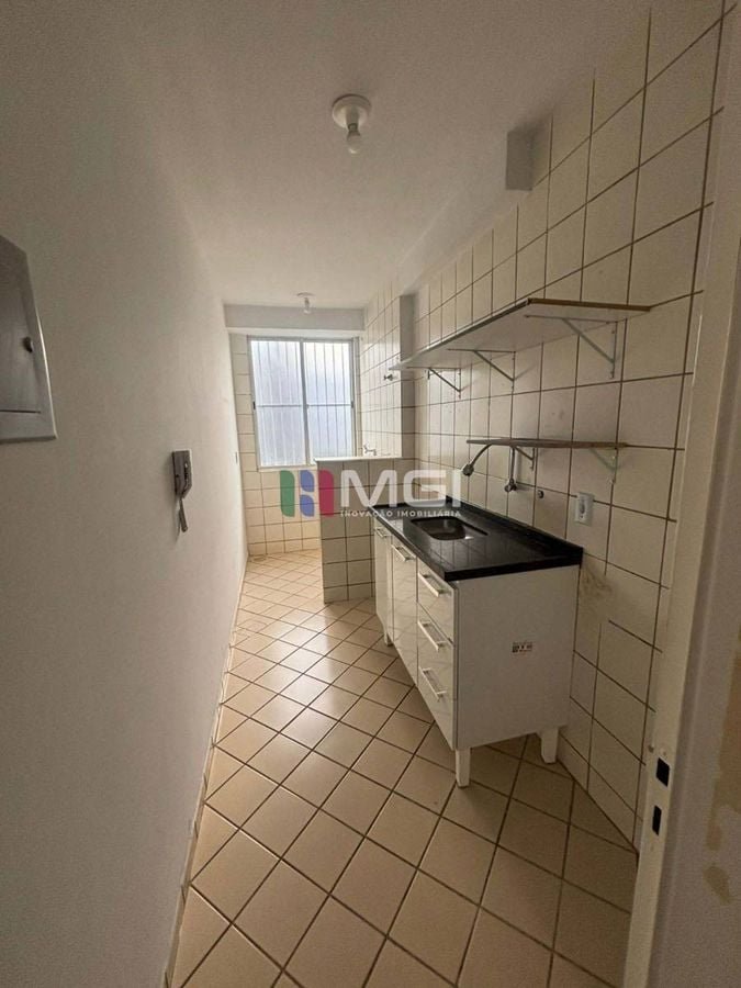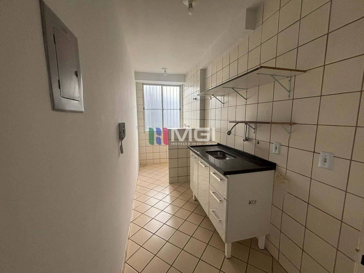 Conta com 2 quartos, 1 banheiro social, cozinha com área de serviço integrada e 1 vaga de garagem.
