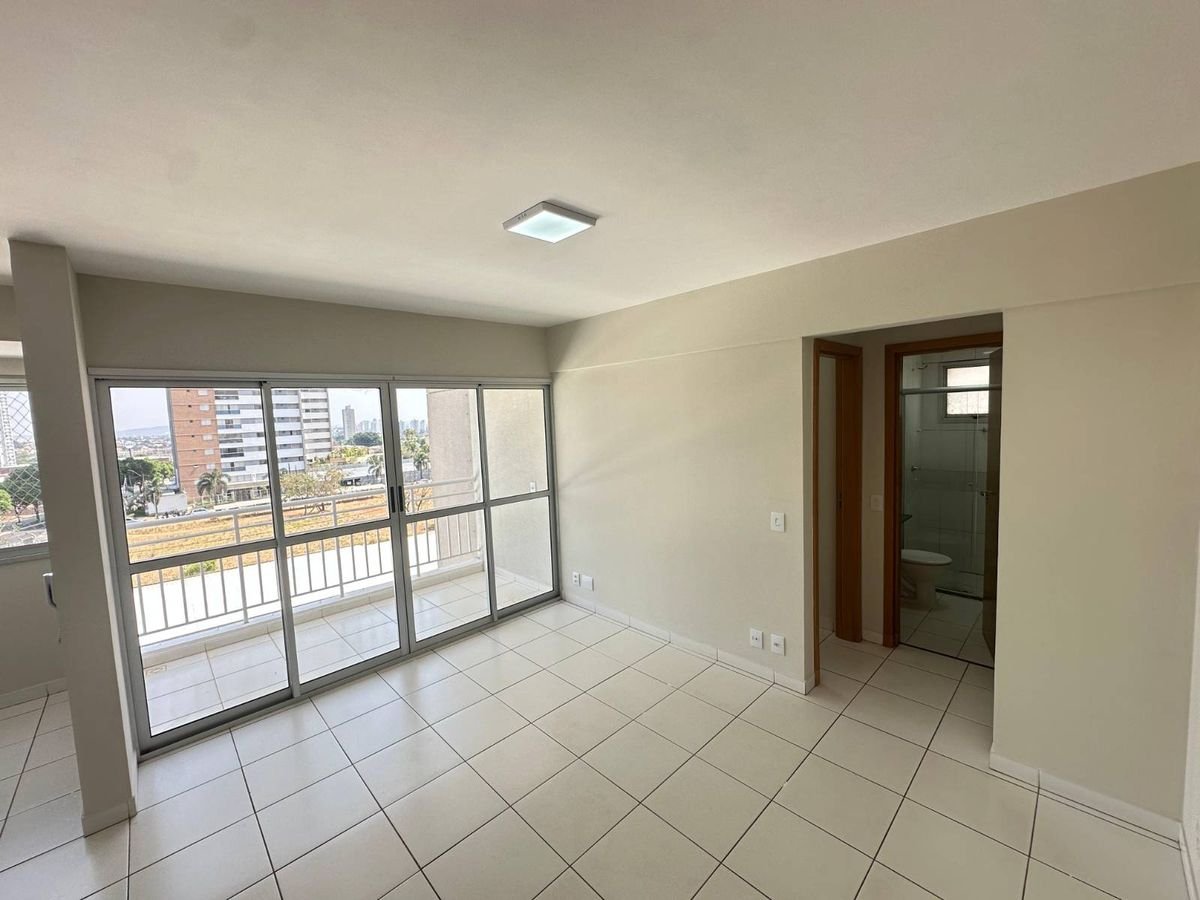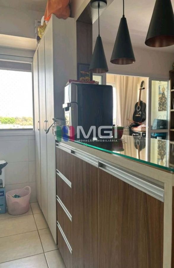 Já a cozinha está equipada com cooktop e sugar. Também possui ar-condicionado em um dos quartos e cortinas em todos os ambientes.