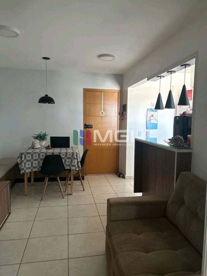 Charmoso apartamento de 55 m², muito bem distribuído, com 2 quartos, sendo 1 suíte, além de banheiro social, sala aconchegante para dois ambientes, cozinha americana e área de serviço.