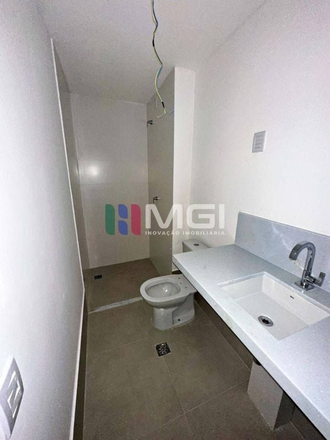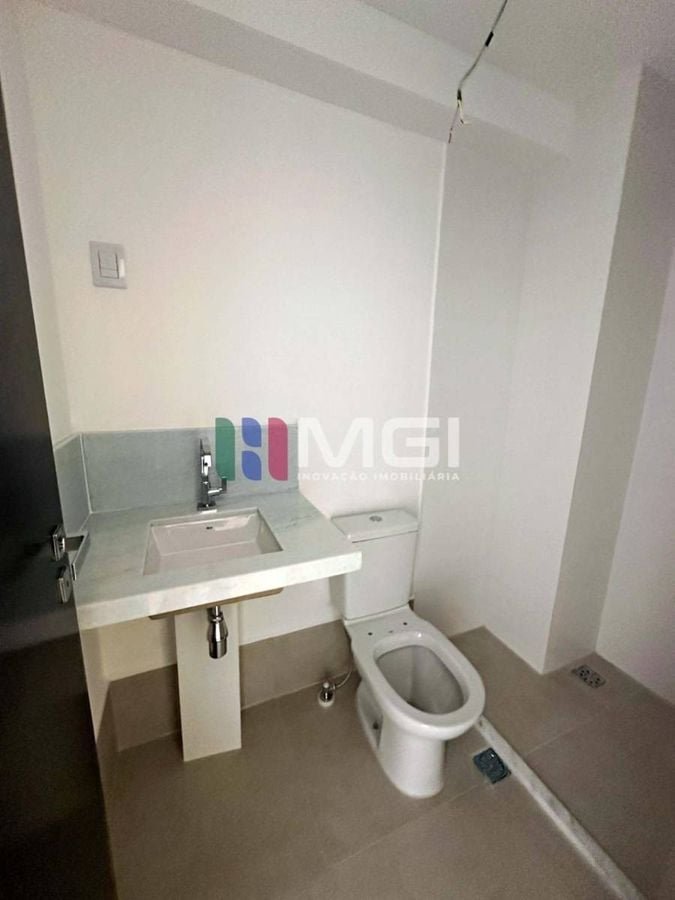 São 2 quartos (1 suíte), lavabo, sala, cozinha integrada, área de serviço e varanda.