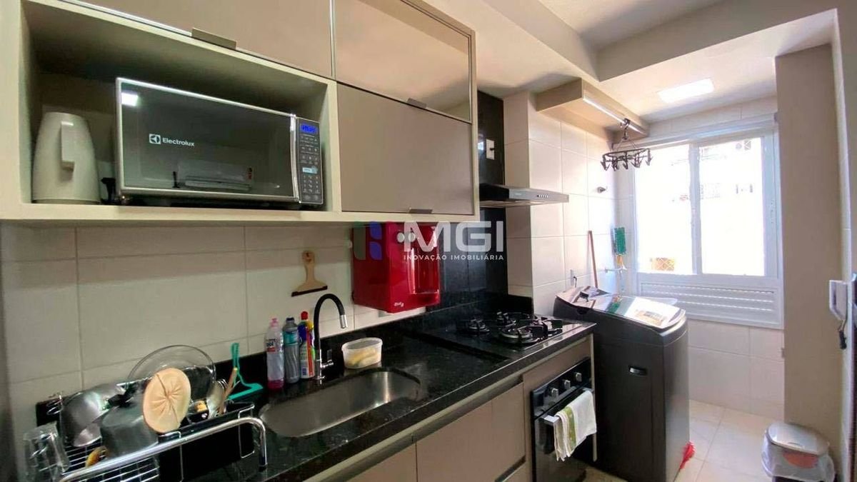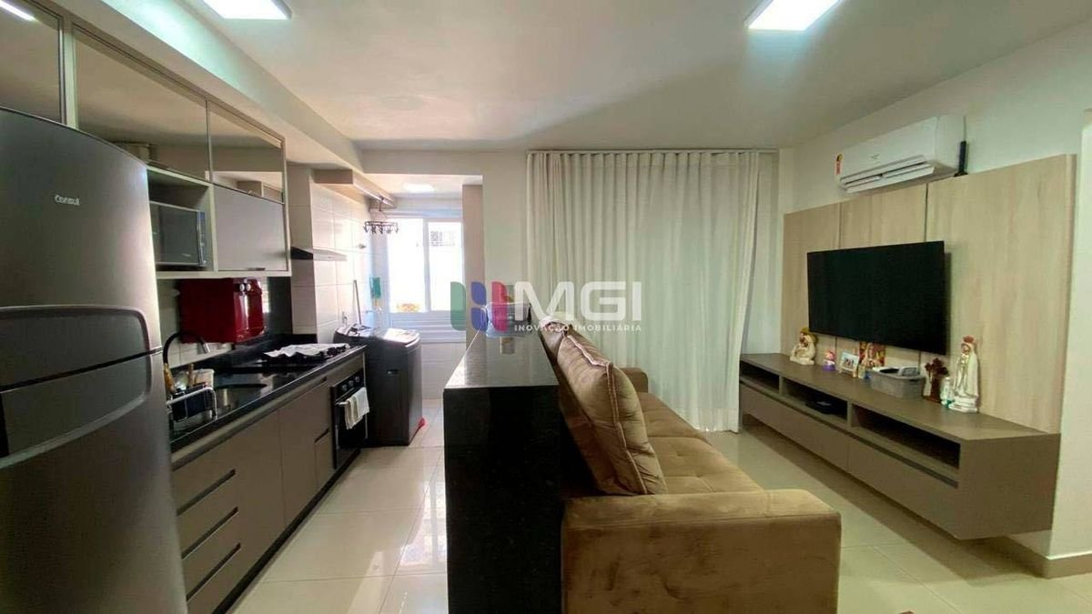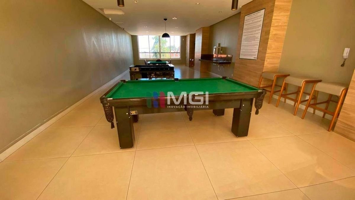 São 2 quartos, sendo 1 suíte, além de banheiro social, sala com sacada, cozinha estilo americana e área de serviço. Conta ainda com 1 vaga de garagem coberta no subsolo, garantindo mais comodidade e segurança. O apartamento possui armários embutidos na suíte, banheiro social, cozinha e área de serviço, além de painel de TV na sala e cortina de vidro na sacada, proporcionando um ambiente mais sofisticado e agradável. A vista é privilegiada para a área de lazer, ficando próximo à piscina.