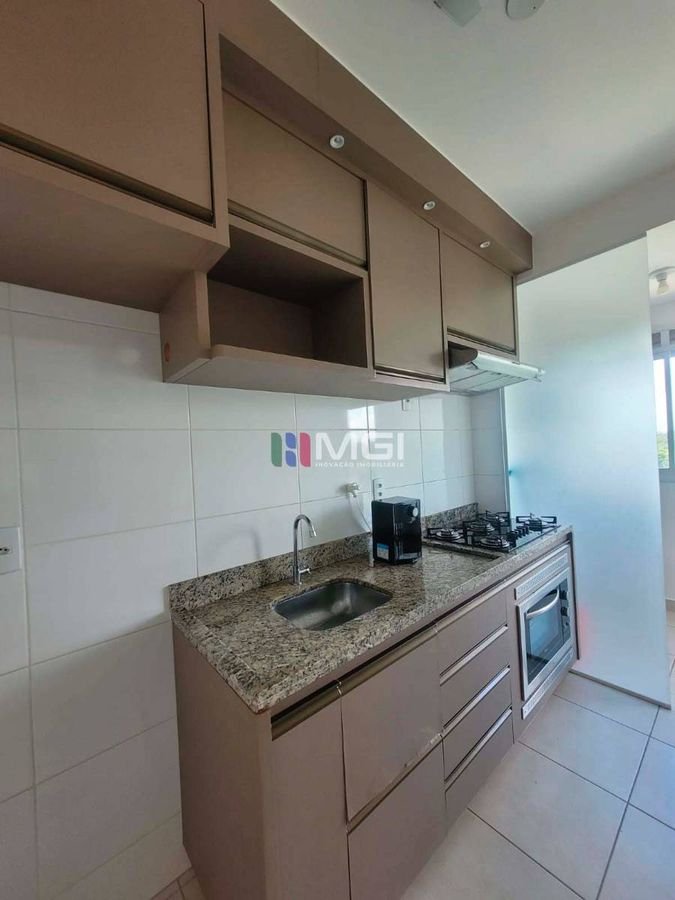A suíte dispõe de ar-condicionado, garantindo mais conforto no dia a dia. A sacada traz charme ao ambiente e possui porta de vidro com acesso pela cozinha, proporcionando mais iluminação e ventilação natural.