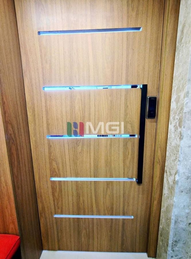 A entrada principal tem porta pivotante, garantindo mais privacidade.