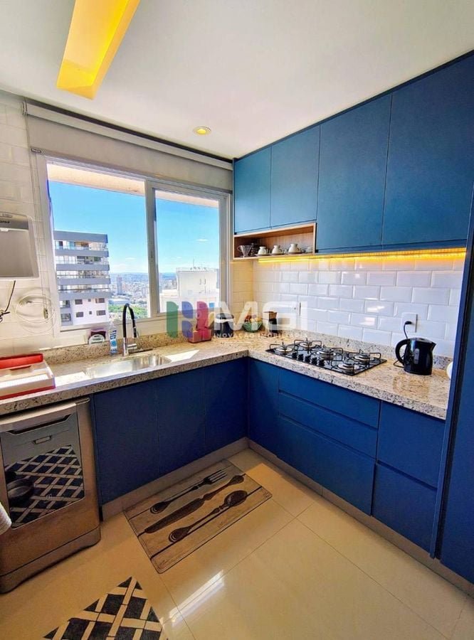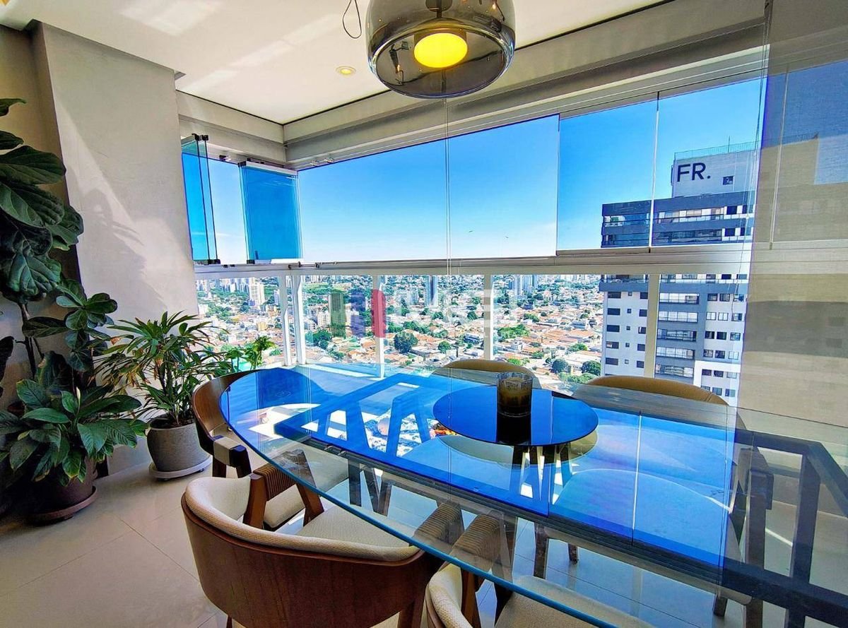 São 121 m² muito bem distribuídos, localizados no 28º andar, com uma vista espetacular do pôr do sol de Goiânia.