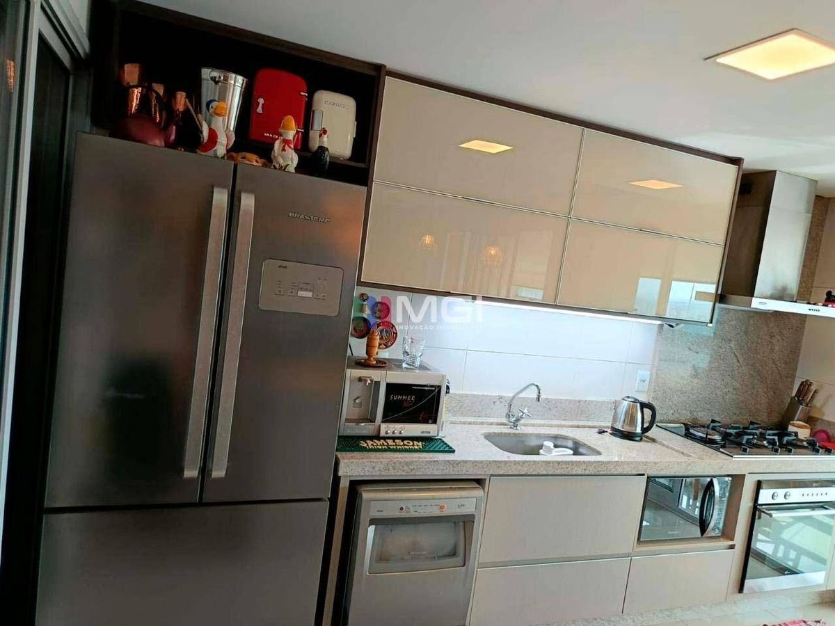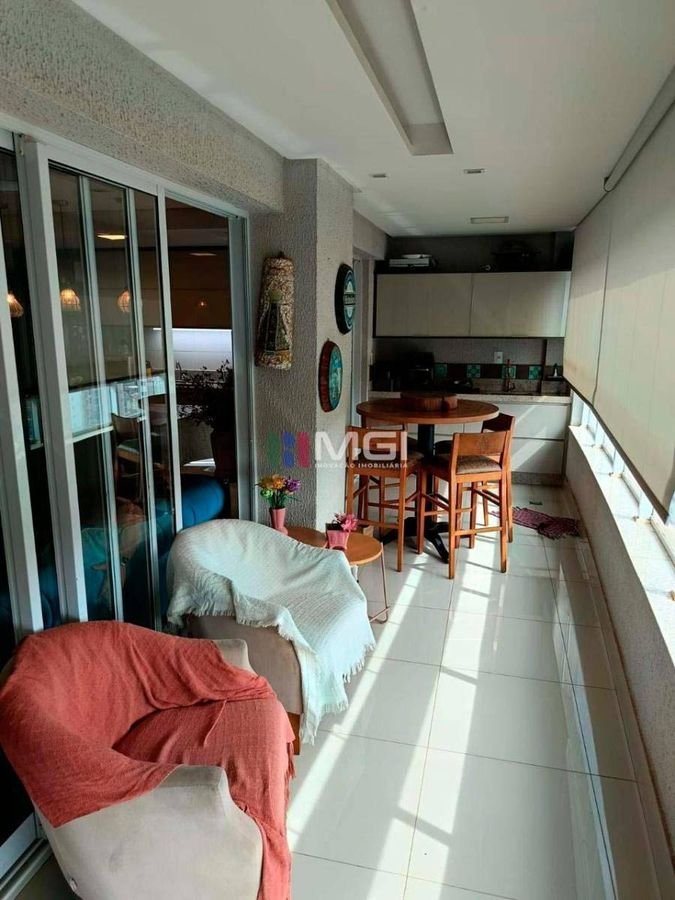 Com 128 m² de área interna, o imóvel possui 3 suítes plenas, 1 lavabo e sala para 3 ambientes, todas climatizadas com ar-condicionado. A sacada ampla proporciona um espaço agradável