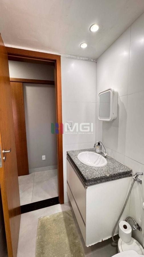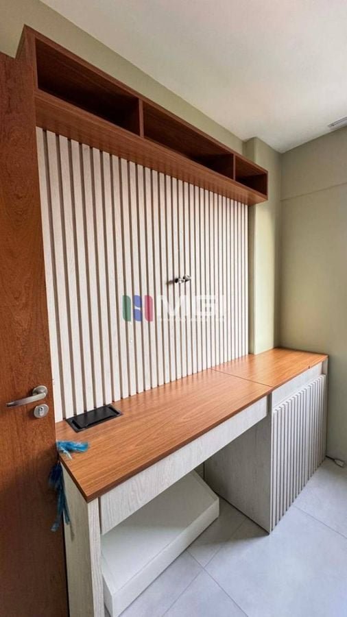 O piso é todo em porcelanato 70×70, trazendo sofisticação e fácil manutenção. A sala conta com painel em porcelanato tipo régua de madeira, e a suíte possui cabeceira com porcelanato e isolamento acústico, além de ar-condicionado Samsung Inverter já instalado.