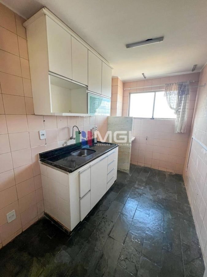 O imóvel possui sala de TV e jantar integradas, criando um espaço amplo e acolhedor para o dia a dia. A cozinha com armários é funcional e fica ao lado da área de serviço, trazendo mais praticidade.