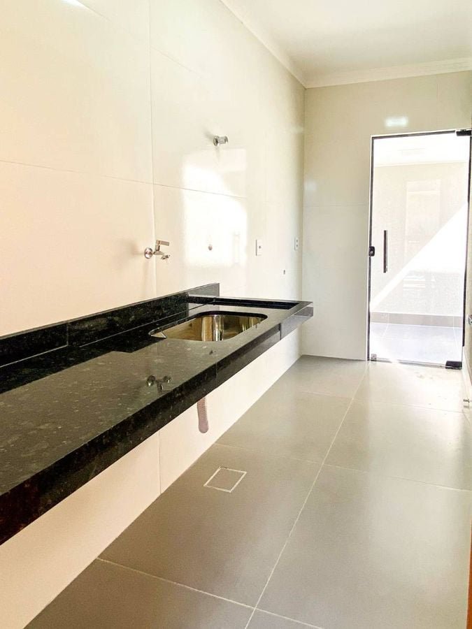 O piso em Ornare Extra Ceral 82×82 e as bancadas em granito Verde Ubatuba reforçam a qualidade do acabamento.