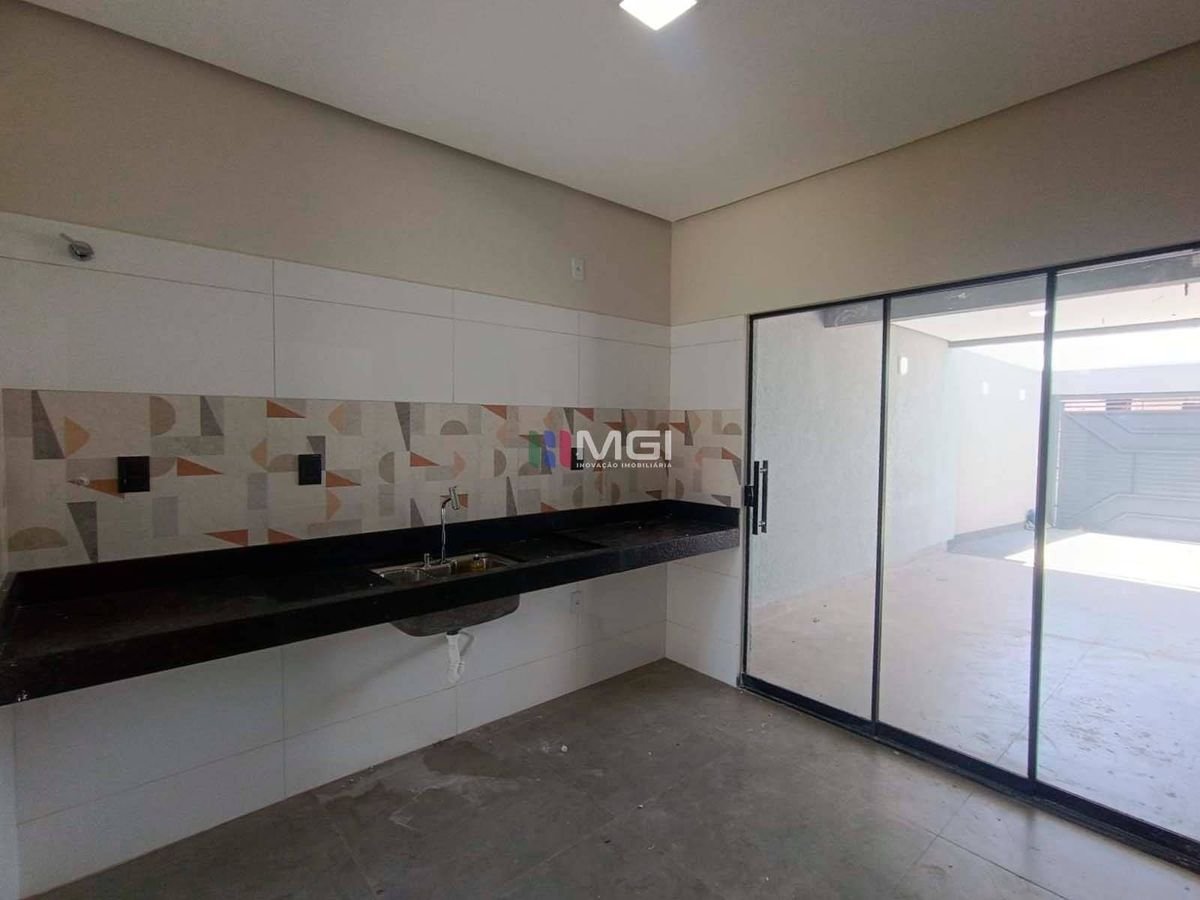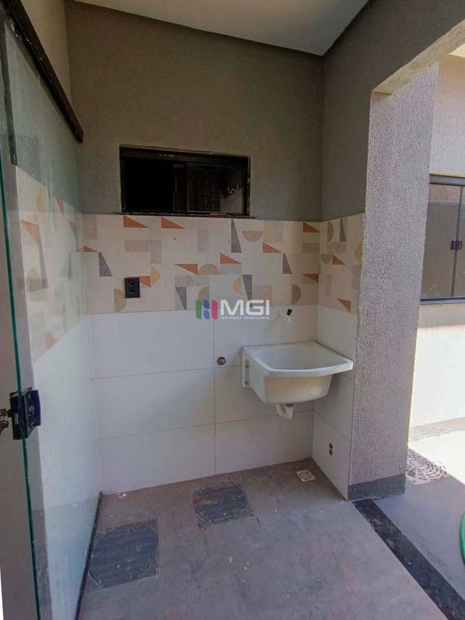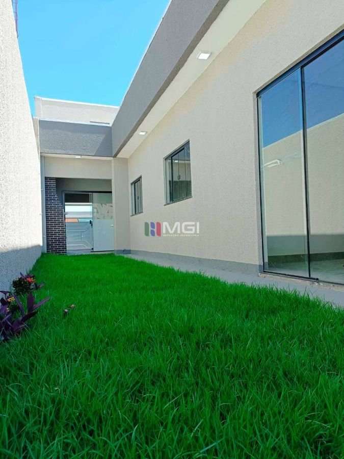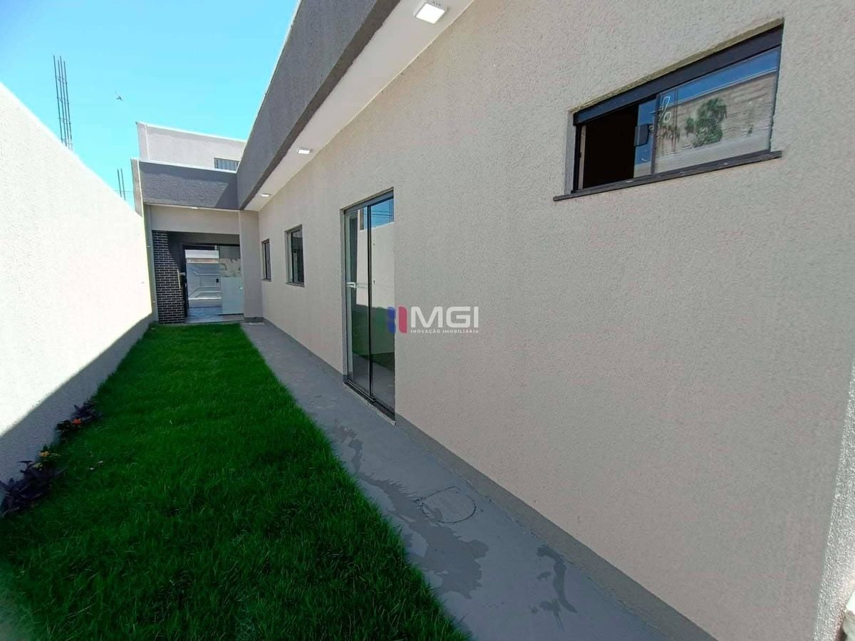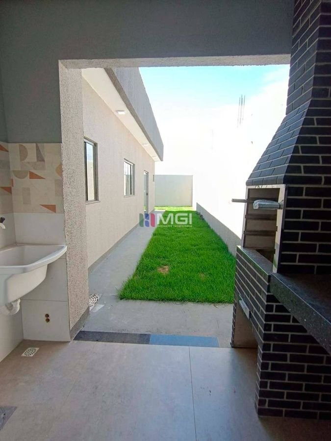 A casa é toda no porcelanato 84×84, com pias e demais pedras em mármore escovado, evidenciando o acabamento caprichoso. A estrutura é de qualidade, com beiral em toda a lateral do imóvel,