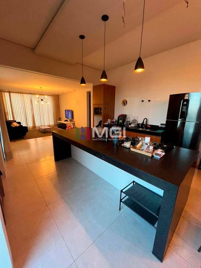 Os acabamentos valorizam cada detalhe: porcelanato em toda a casa e mármores de alta qualidade nas bancadas e na ilha gourmet, trazendo sofisticação ao ambiente.