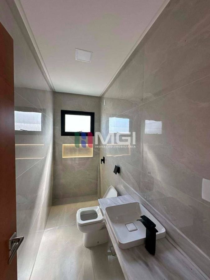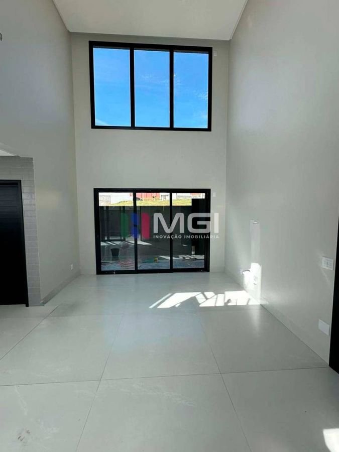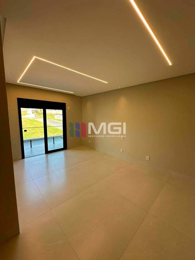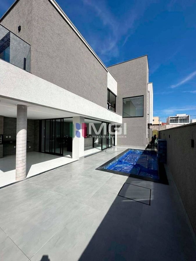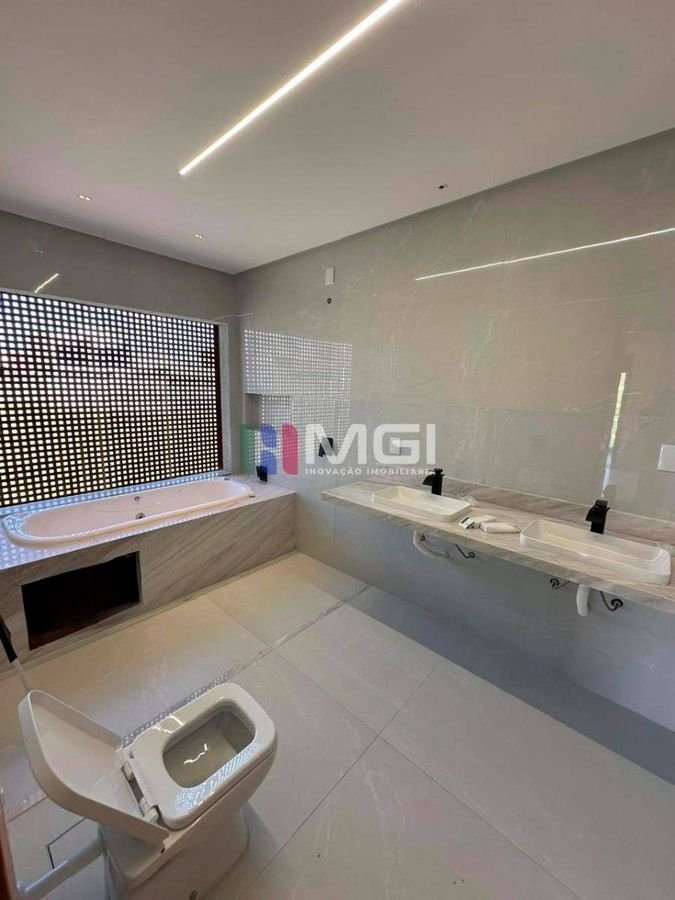 A sala ampla com pé-direito duplo proporciona elegância e excelente iluminação natural. A casa dispõe de garagem para 4 carros, marmoraria fina, iluminação em LED em todos os ambientes e na fachada, além de porcelanato 1,20 x 1,20, que reforça o alto padrão do imóvel.