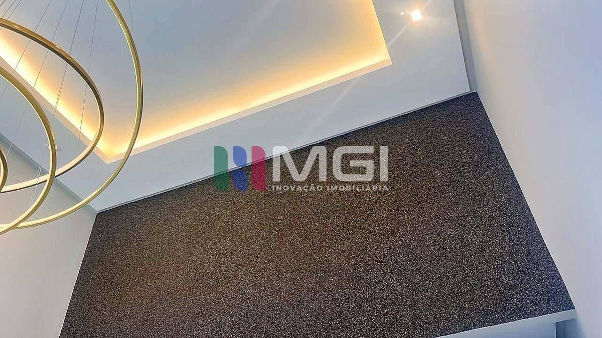 Entre os diferenciais de acabamento, estão a sala com pé-direito duplo, sanca iluminada, iluminação dicroica, porta principal imponente com 2,80m em lambril e puxador cromado, além de uma parede com pintura decorativa Crystal.