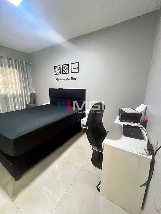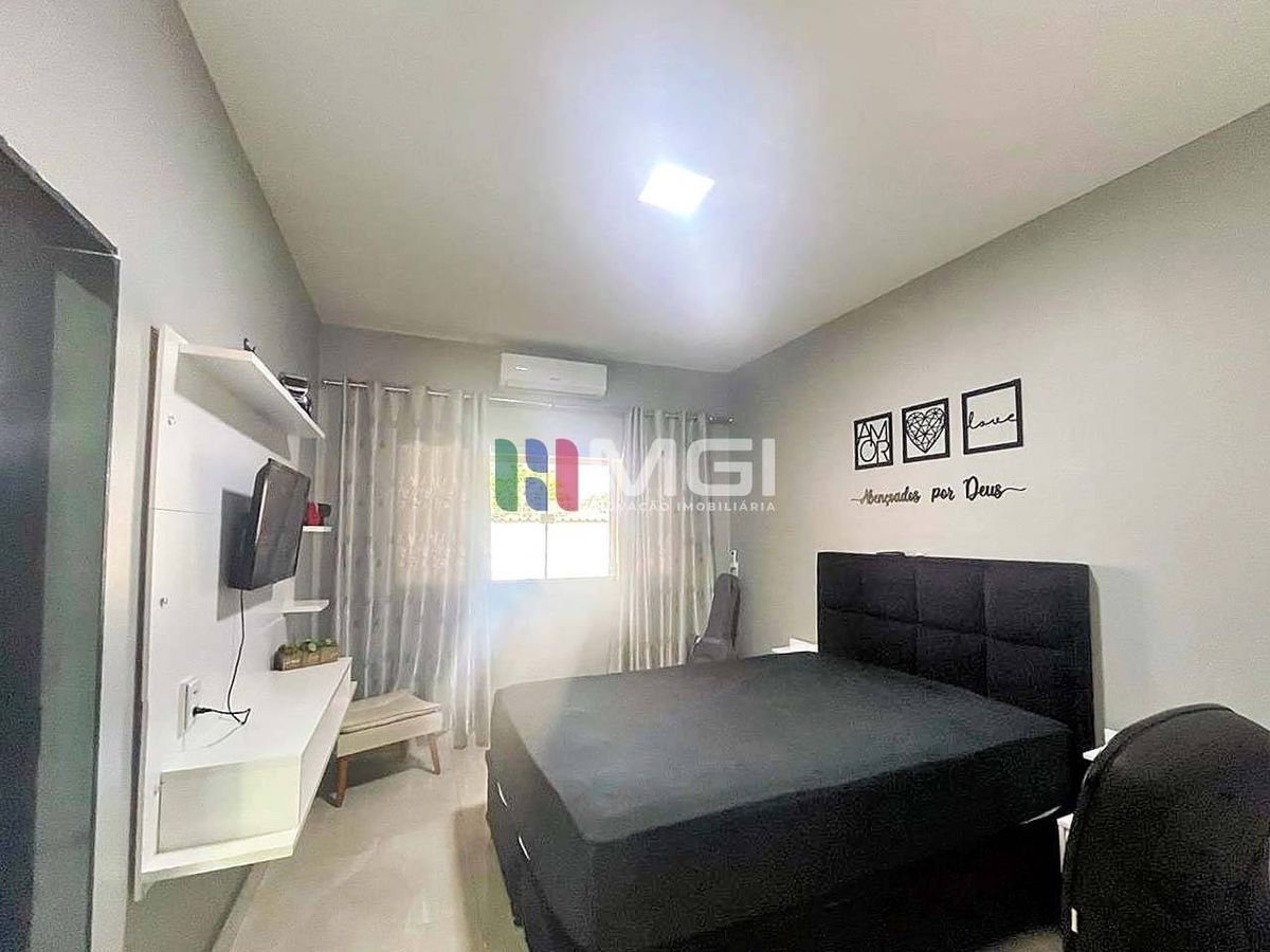 Com terreno de 366m² e 128m² de área construída, a casa oferece 3 quartos, sendo 1 suíte com closet, banheiro social, cozinha gourmet, sala espaçosa com painel de TV e área de serviço.