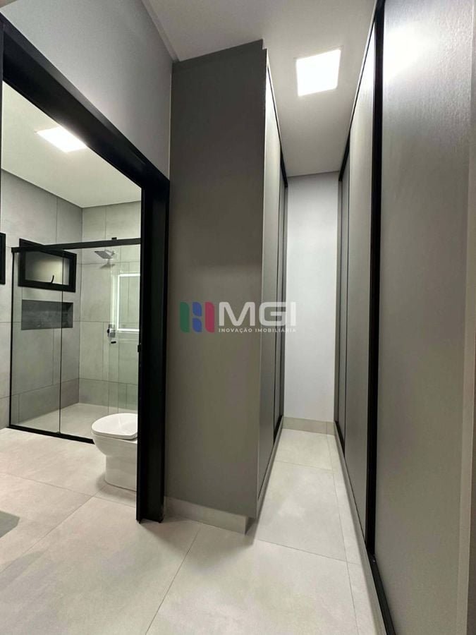 São 3 quartos, sendo uma suíte com closet totalmente planejado. Os outros dois quartos contam com um banheiro compartilhado e lavabo externo,
