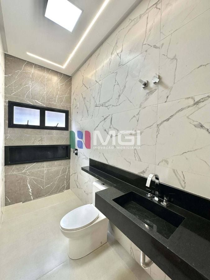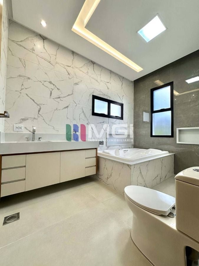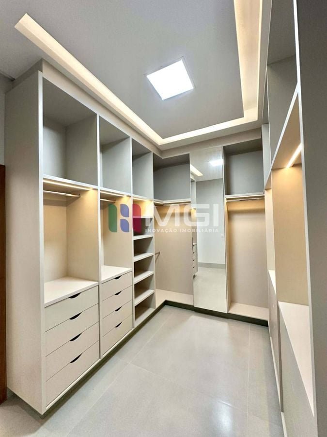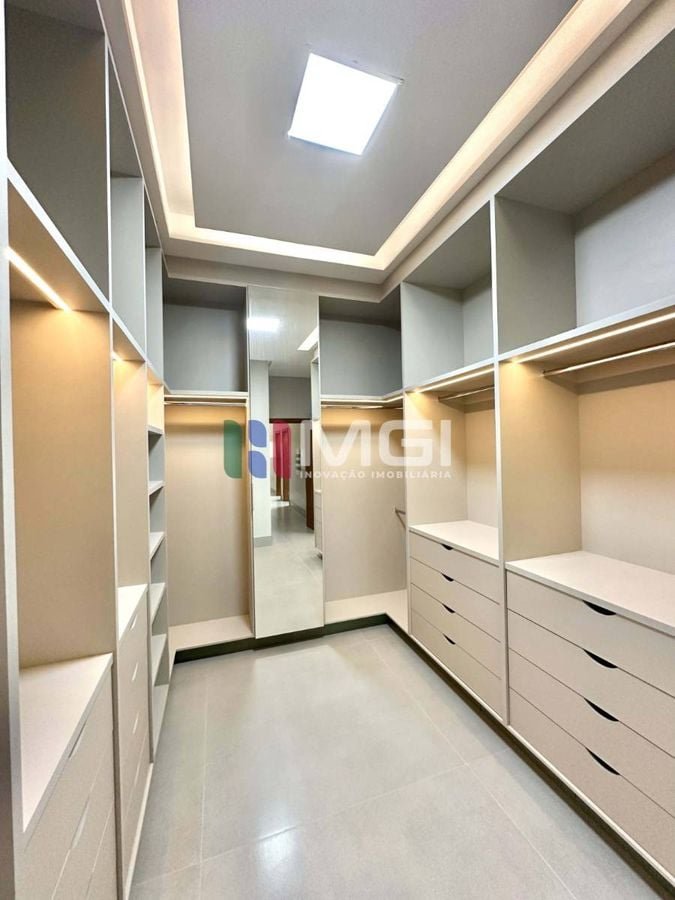 São 4 suítes, incluindo uma master com closet e hidromassagem, além de escritório, lavabo, banheiro externo e depósito.