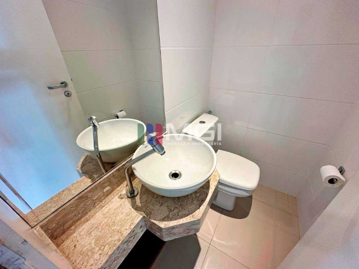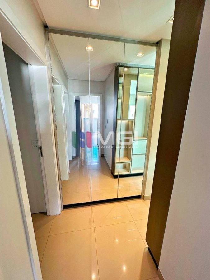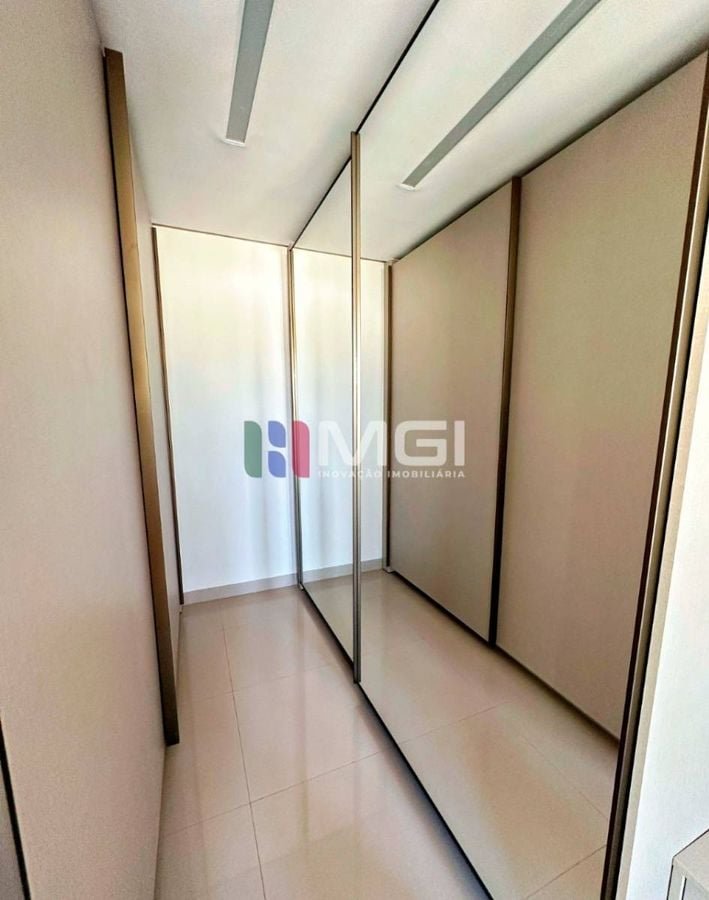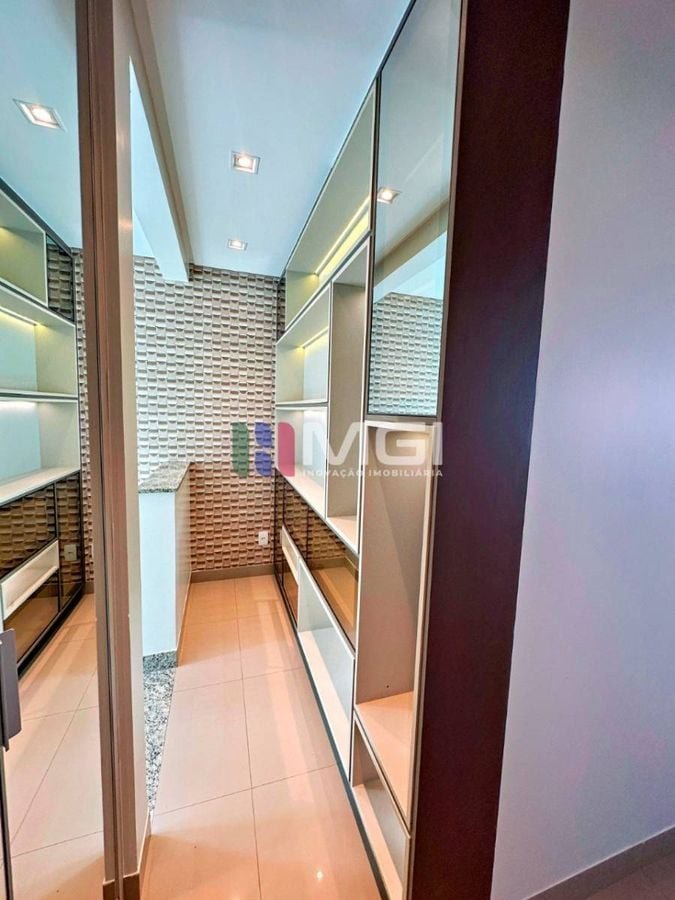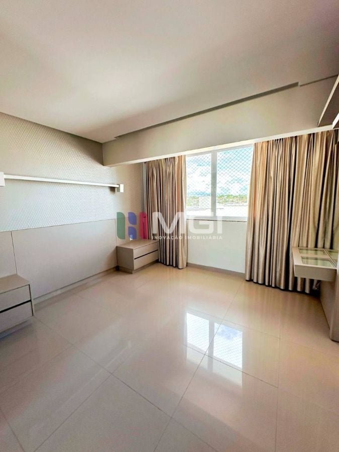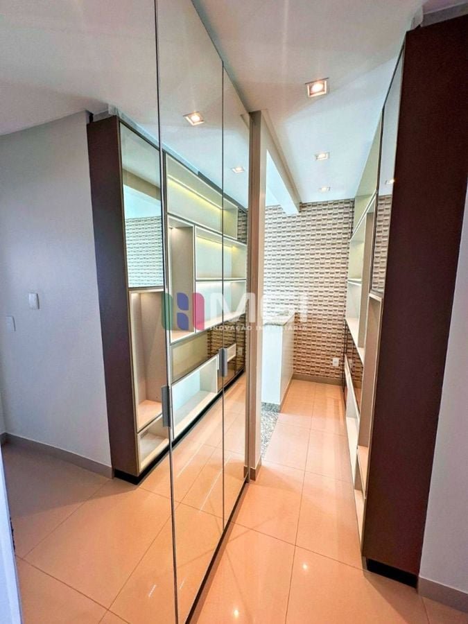 O imóvel oferece 3 suítes com armários embutidos e ar-condicionado, sala ampla com 2 ambientes, cozinha completa com armários planejados, torre quente, forno elétrico e cooktop.