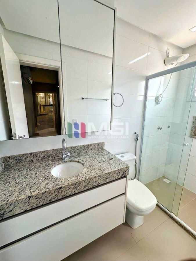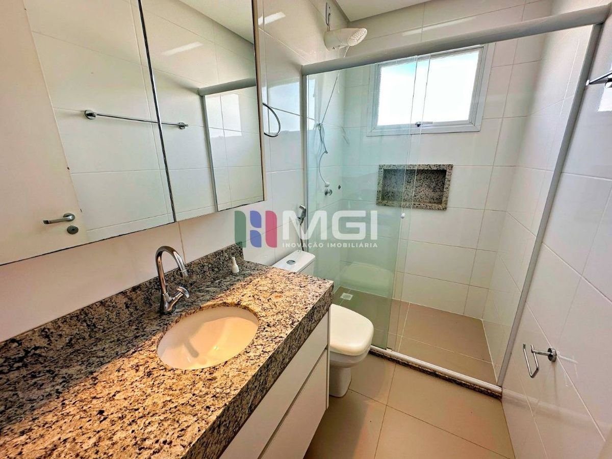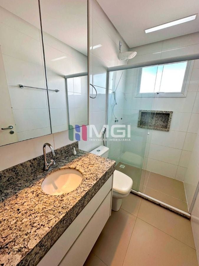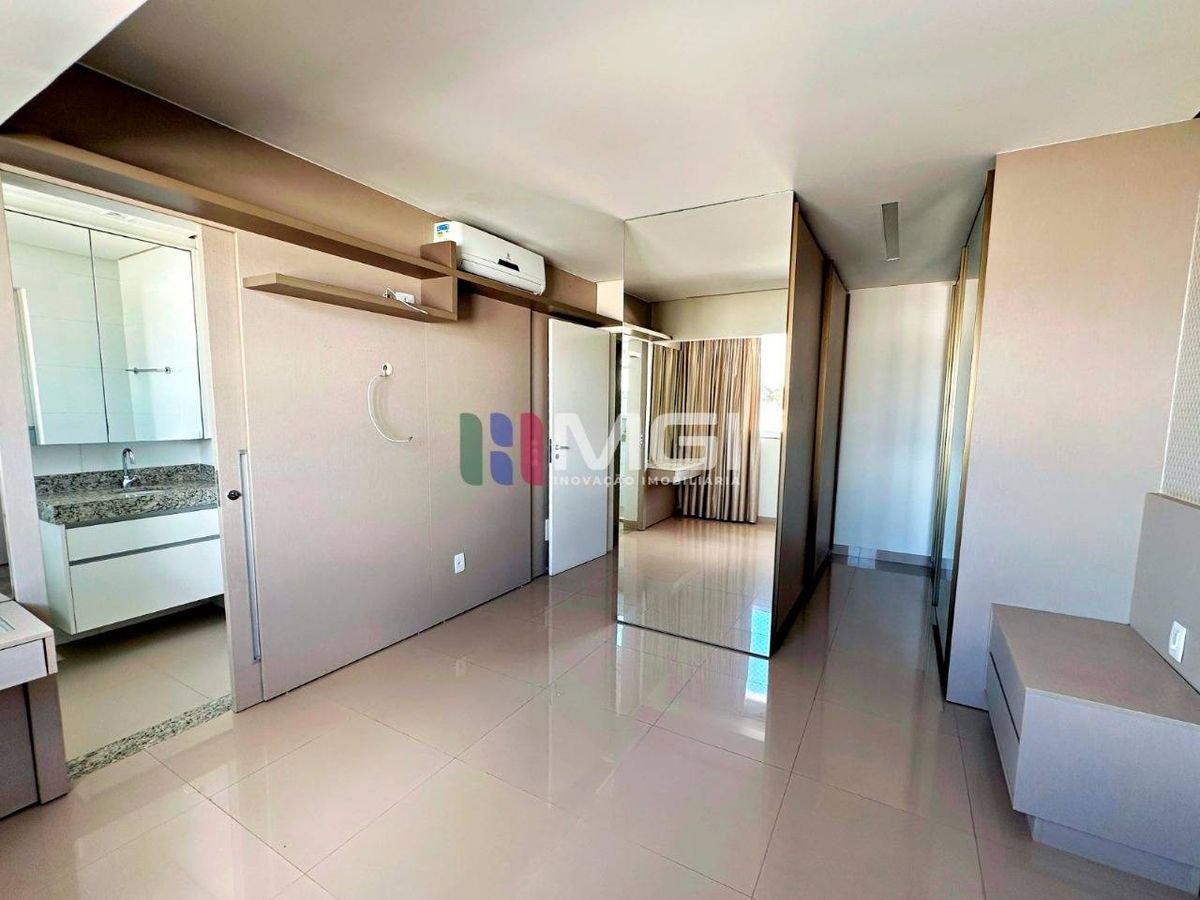O imóvel oferece 3 suítes com armários embutidos e ar-condicionado, sala ampla com 2 ambientes, cozinha completa com armários planejados, torre quente, forno elétrico e cooktop.
