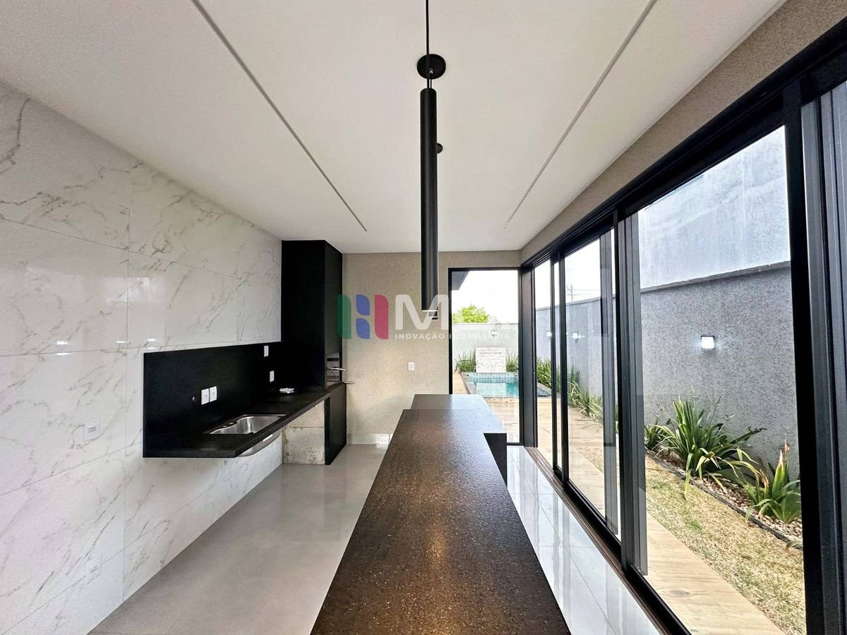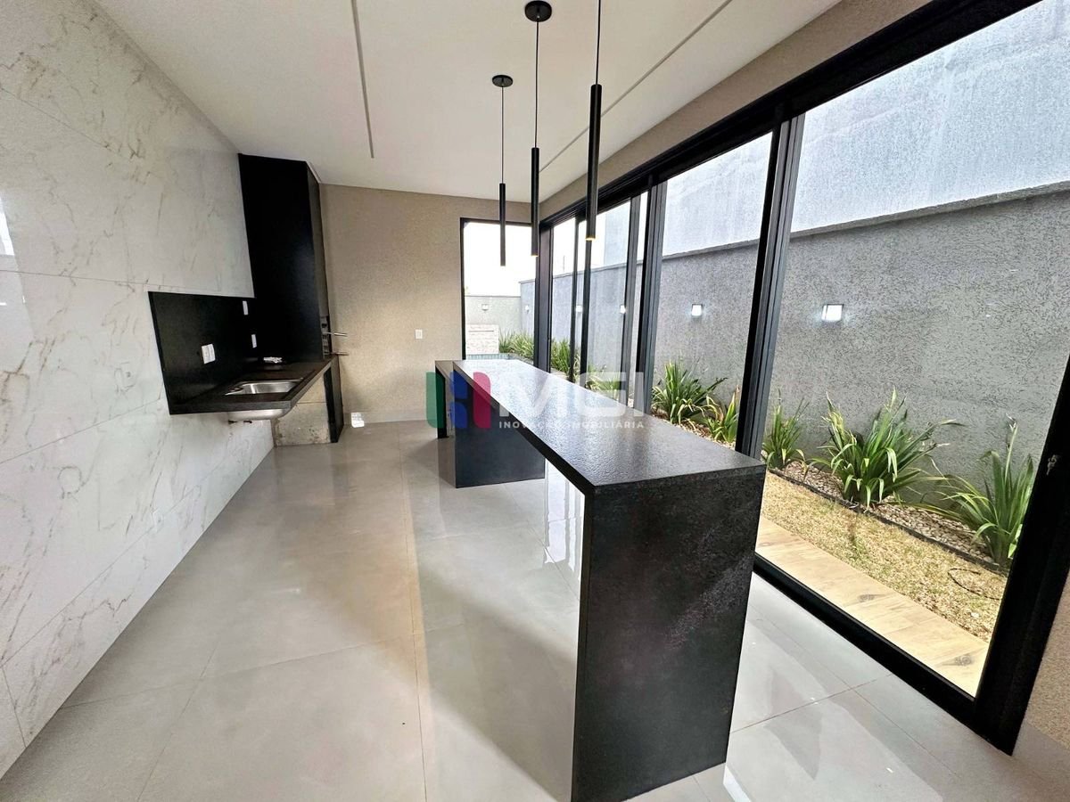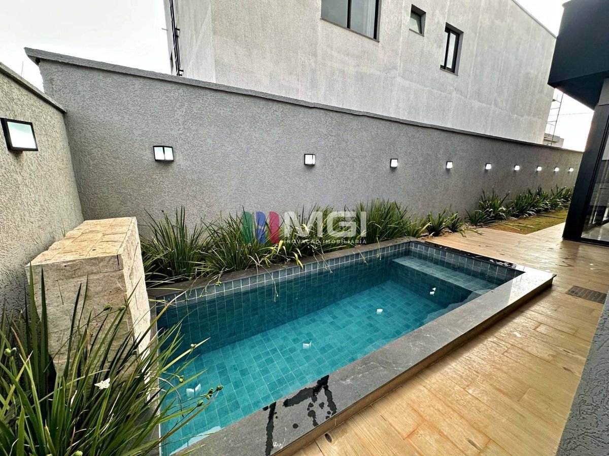 O projeto luminotécnico valoriza cada detalhe da casa. Na área externa, você encontra churrasqueira a carvão, piscina e lavanderia coberta, ideais para o dia a dia e para momentos de lazer.