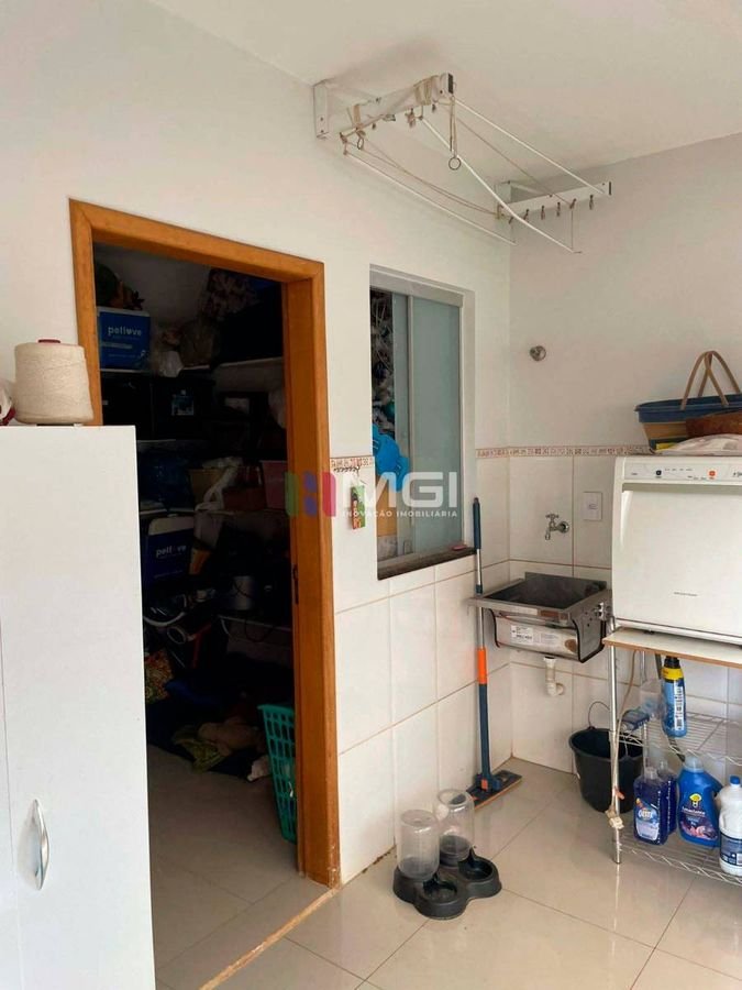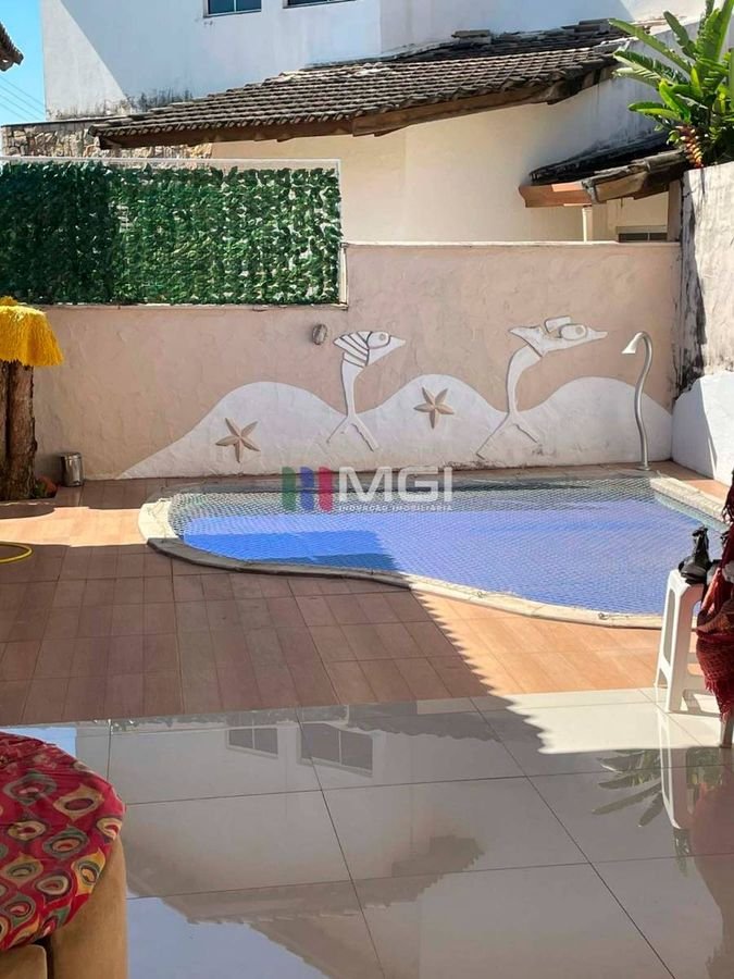 A casa conta ainda com mezanino em piso laminado, varanda aconchegante, área de serviço independente e quarto de apoio. Os banheiros são atendidos por boiler de 300 litros, garantindo eficiência e conforto. A área de lazer é um dos grandes destaques, com piscina aquecida, ideal para uso durante todo o ano.