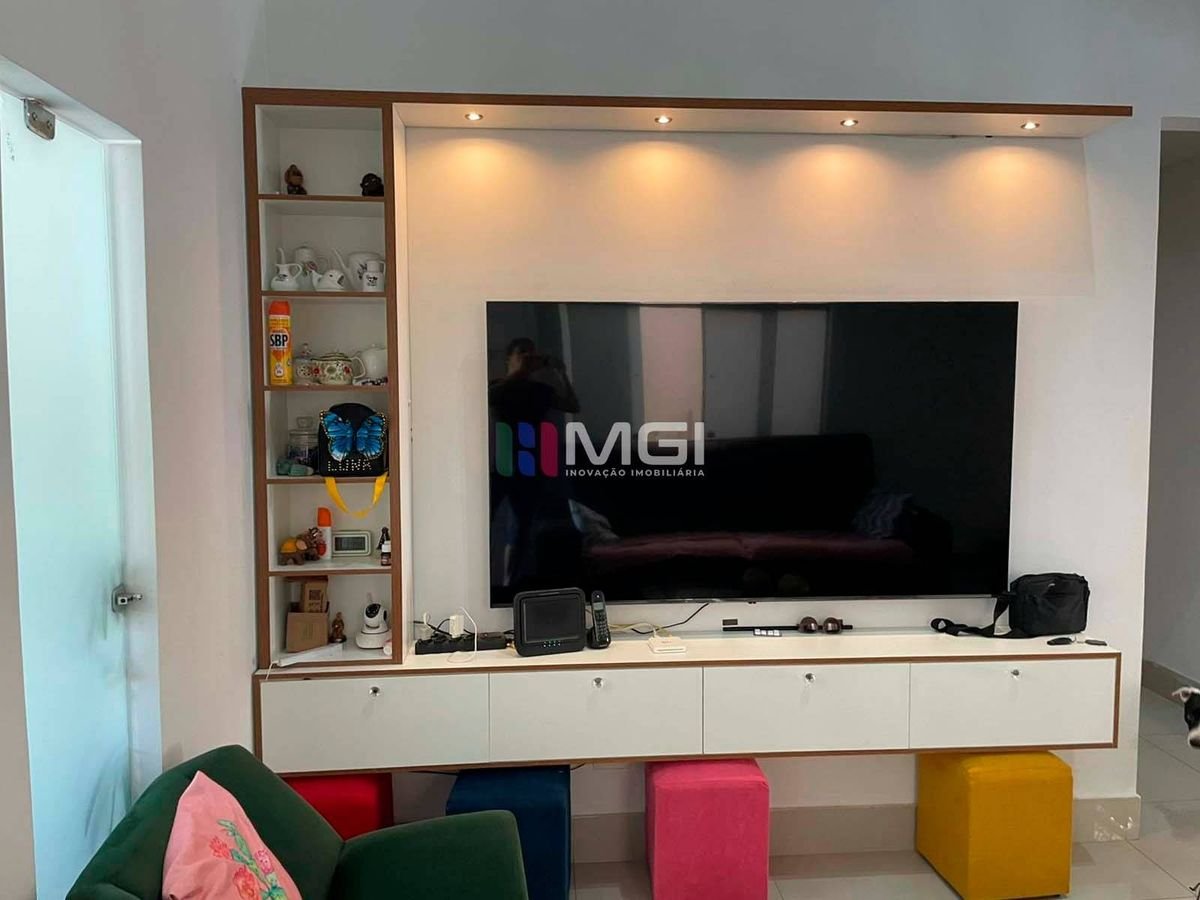Possui acabamento de alto padrão, todo em porcelanato de primeira linha. São 3 quartos, sendo 2 suítes, uma delas com banheiro americano, além de sala ampla com dois ambientes, lavabo e cozinha com armários planejados.