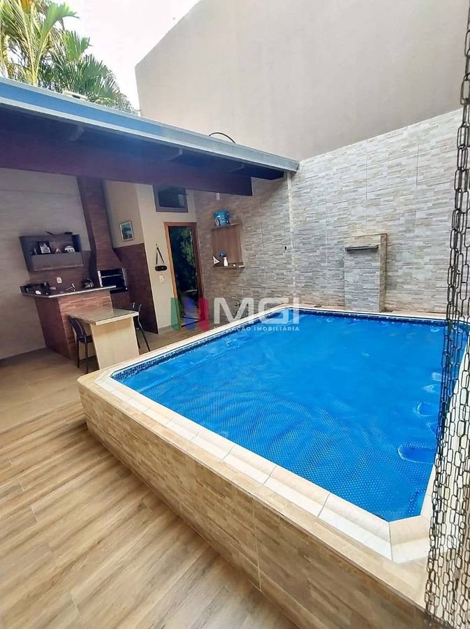 Com 210 m² de terreno e 145 m² construídos, a casa oferece sala e copa com pé direito duplo, porcelanato de alta qualidade e armários planejados em todos os cômodos.