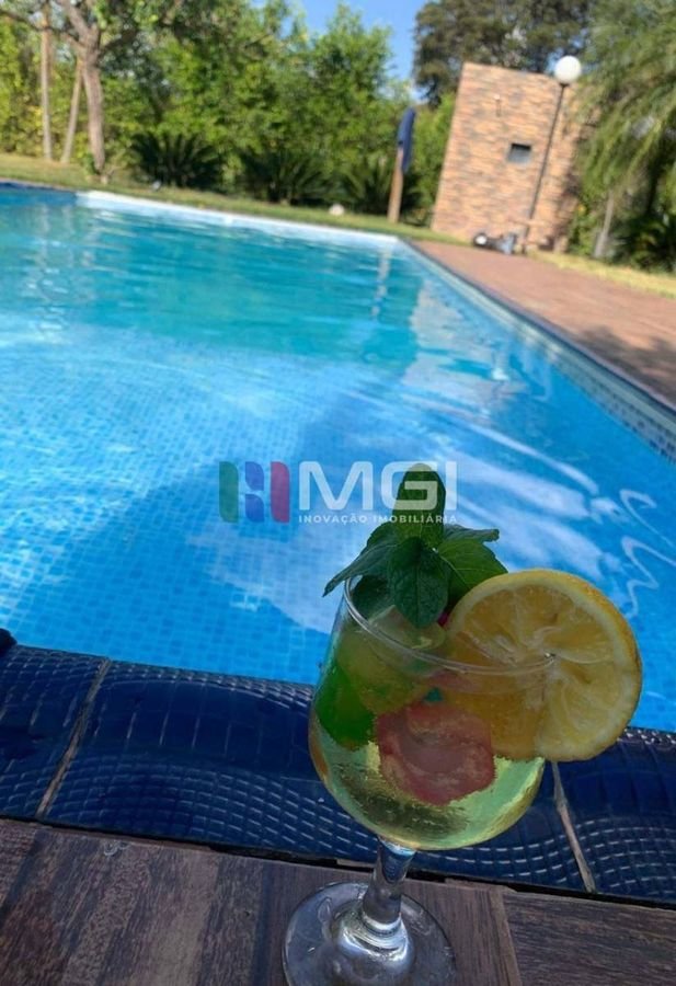 A área de lazer inclui piscina aquecida com hidromassagem, jardim gramado, árvores frutíferas e horta.