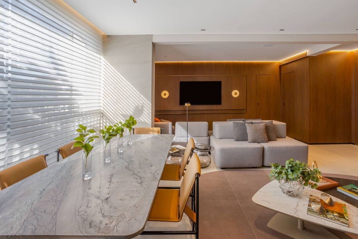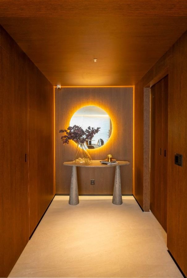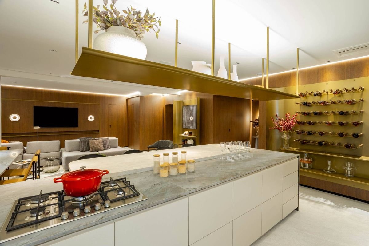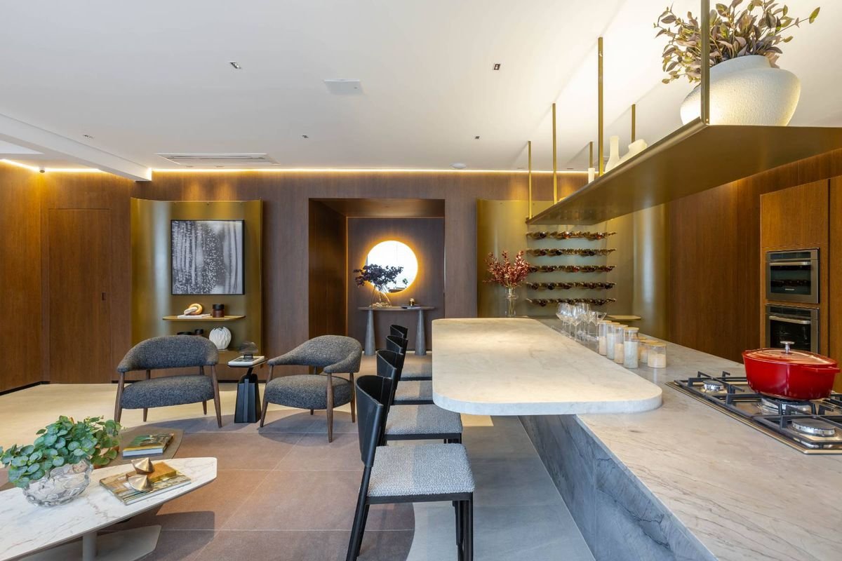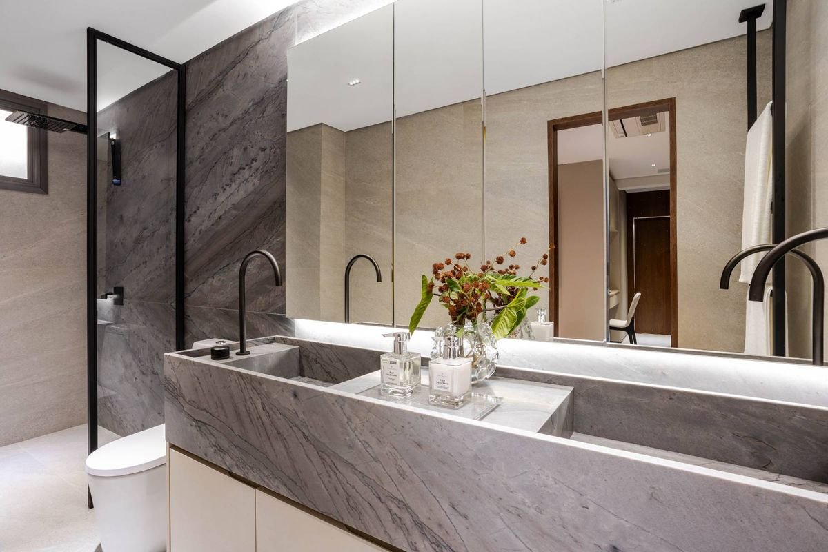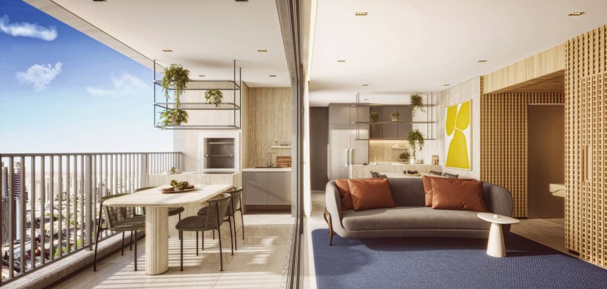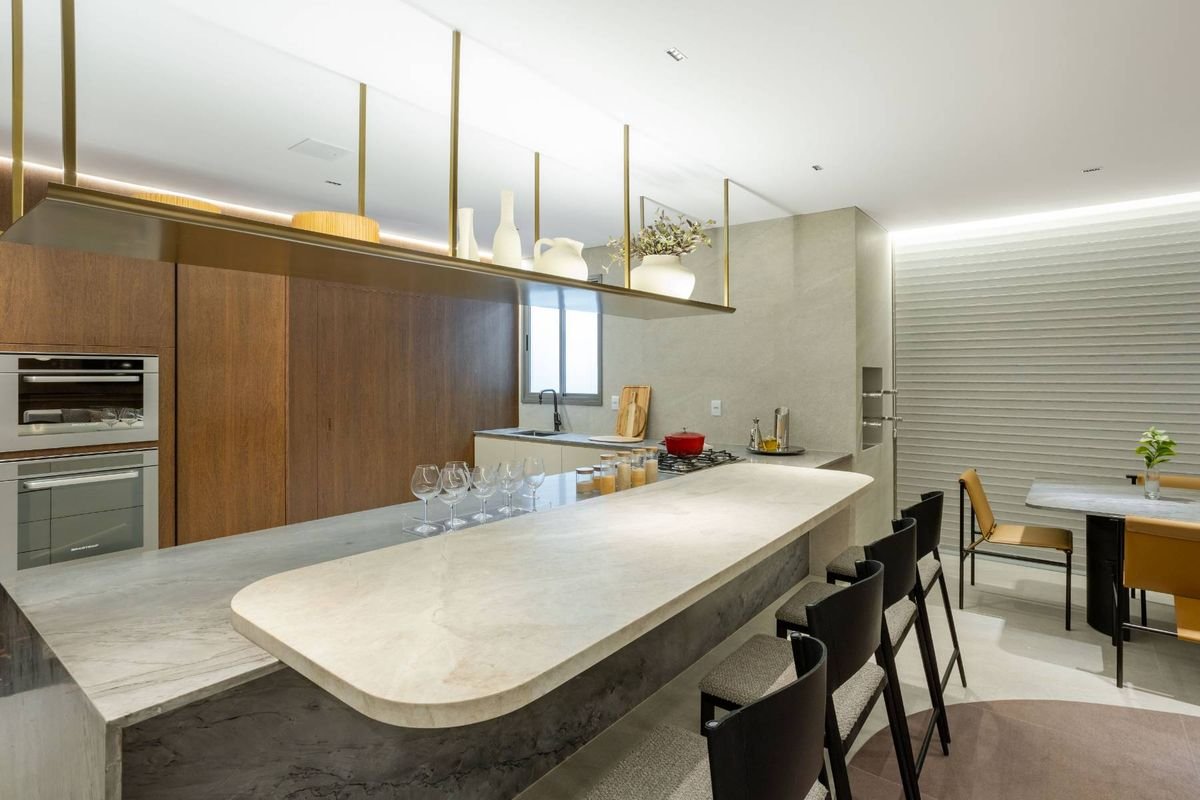 Cada unidade conta com suítes com banheiros privativos, além de um lavabo social, cozinha fechada, varanda gourmet com churrasqueira a carvão e hall privativo com elevador exclusivo, garantindo praticidade e privacidade.