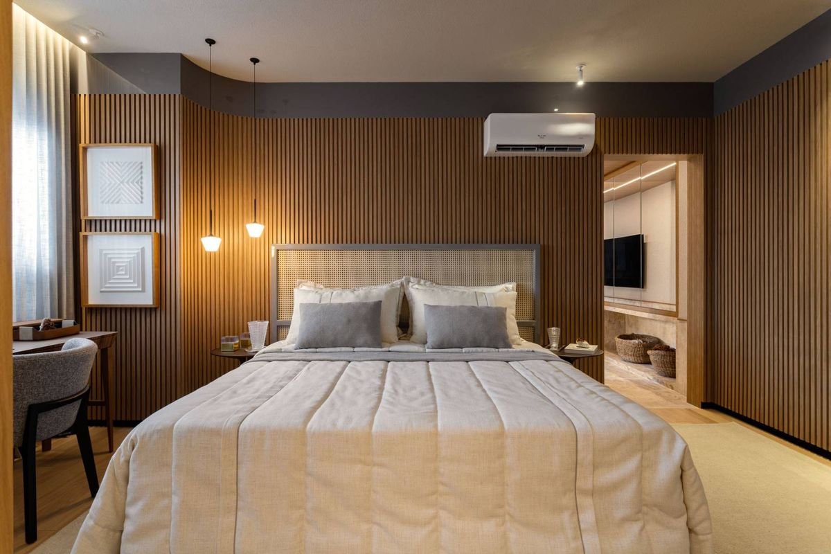 que oferecem ainda mais conforto e exclusividade. Todas as unidades contam com varanda gourmet com churrasqueira a gás, elevador privativo e hall exclusivo, proporcionando total