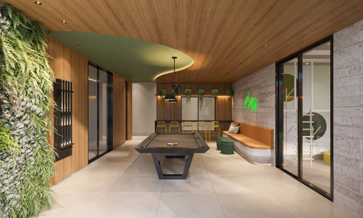 A área de lazer do empreendimento é completa e pensada para atender diferentes estilos de vida. O rooftop abriga uma piscina panorâmica com vista da cidade, além de spa, sauna, academia assinada pelo Grupo Flex, coworking, salão de festas, espaço gourmet, pet place, lavanderia compartilhada, mini market, bike stay e áreas de convivência elegantes e acolhedoras. Tudo isso com tecnologia, segurança e conveniência no dia a dia.