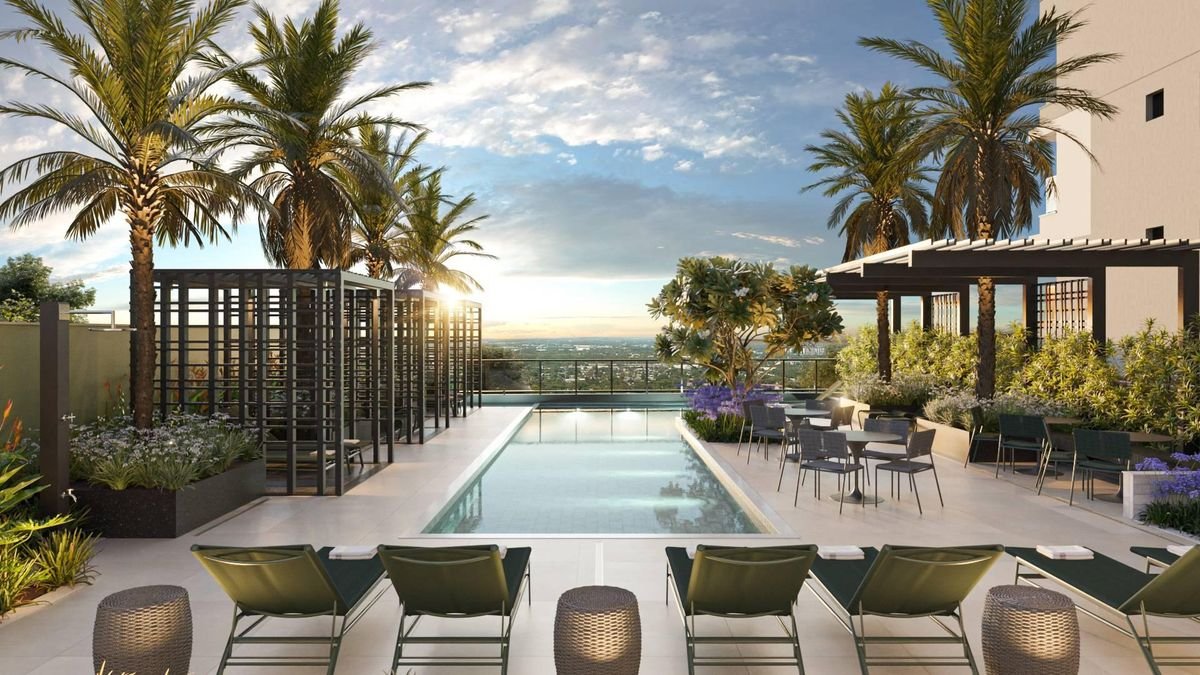 3 suítes, sendo que algumas contam com a opção de piscina privativa na varanda, um diferencial de alto padrão que eleva o conceito de bem-estar urbano.