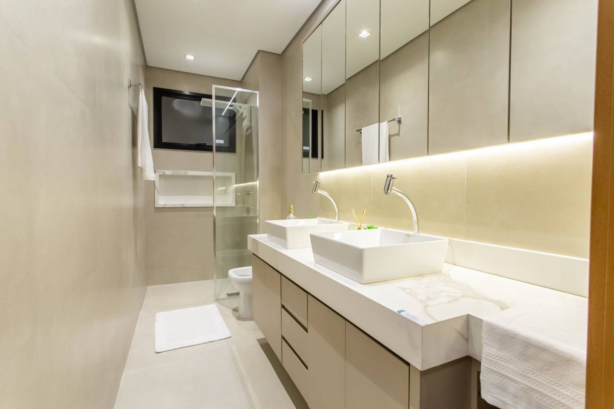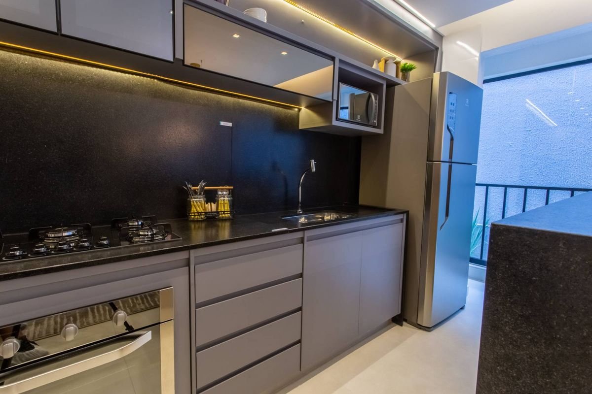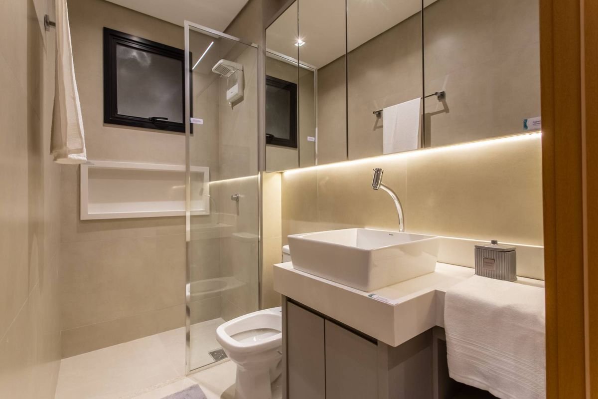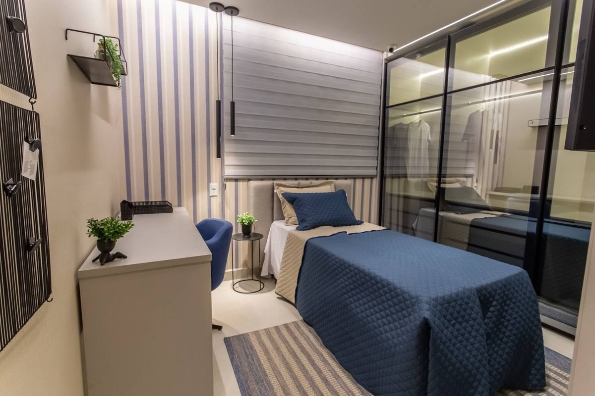 Todos os apartamentos possuem varanda, sala de estar e jantar integradas, cozinha moderna e acabamentos de alto padrão, incluindo fechadura digital, forro rebaixado em gesso, bancadas em granito, tomadas USB nas suítes e preparação para ar-condicionado split.