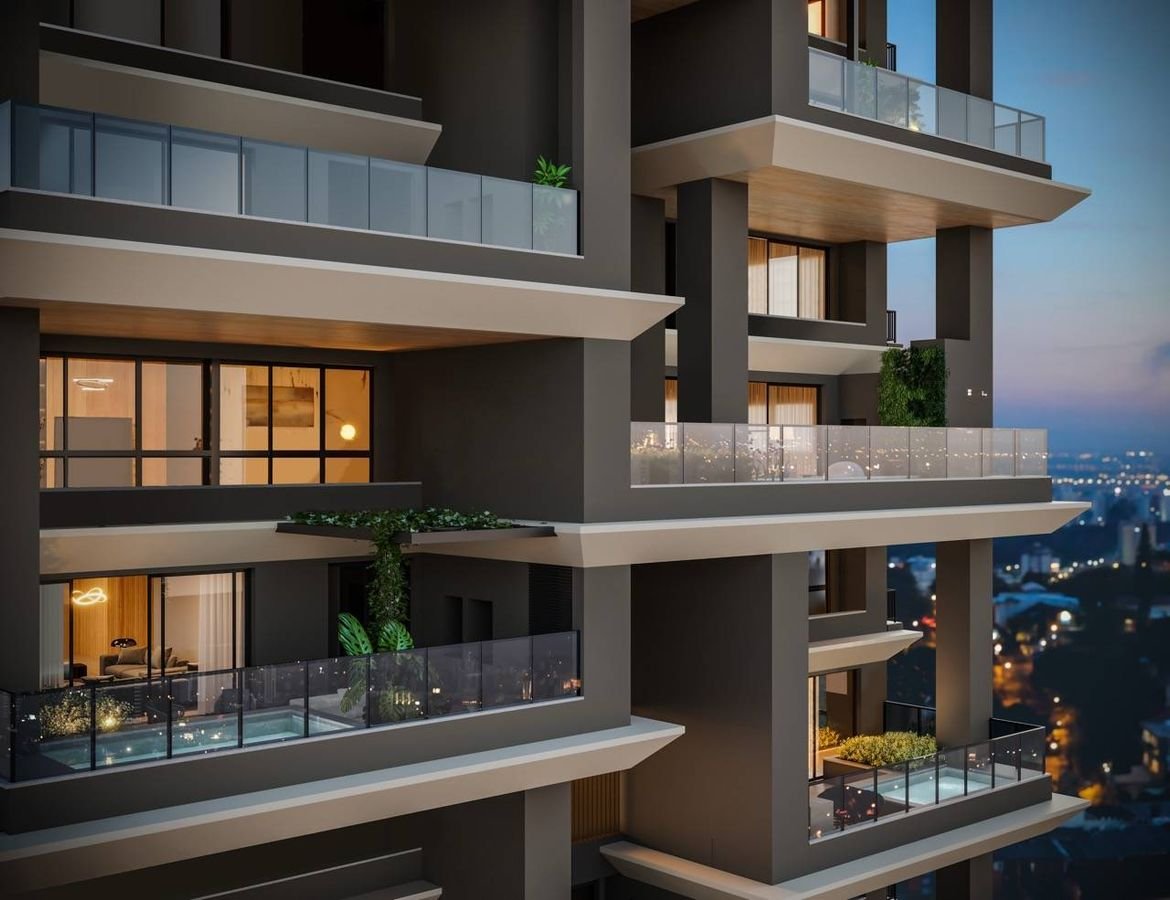 Cada unidade possui acabamentos premium, sendo concebida como uma “mansão suspensa” com piscina privativa, varanda ampla (em alguns casos com jabuticabeira) e um nível elevado de