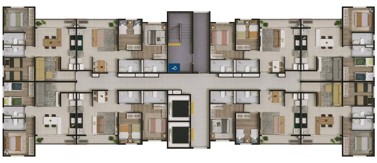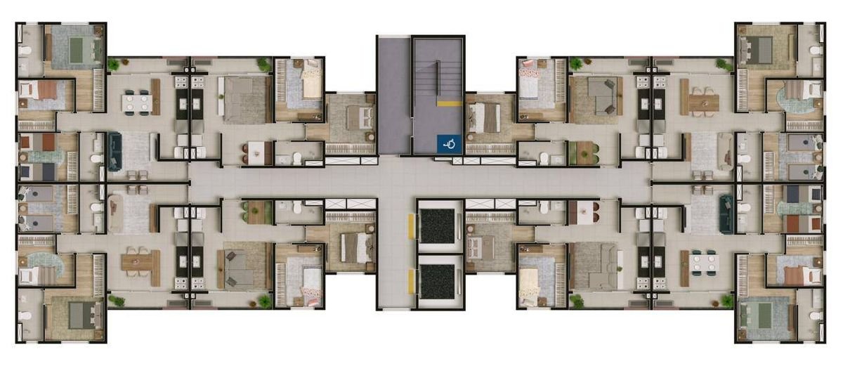 Os apartamentos já vêm com fechadura digital, ponto USB-C nos quartos, preparação para ar-condicionado, piso em porcelanato nas áreas sociais