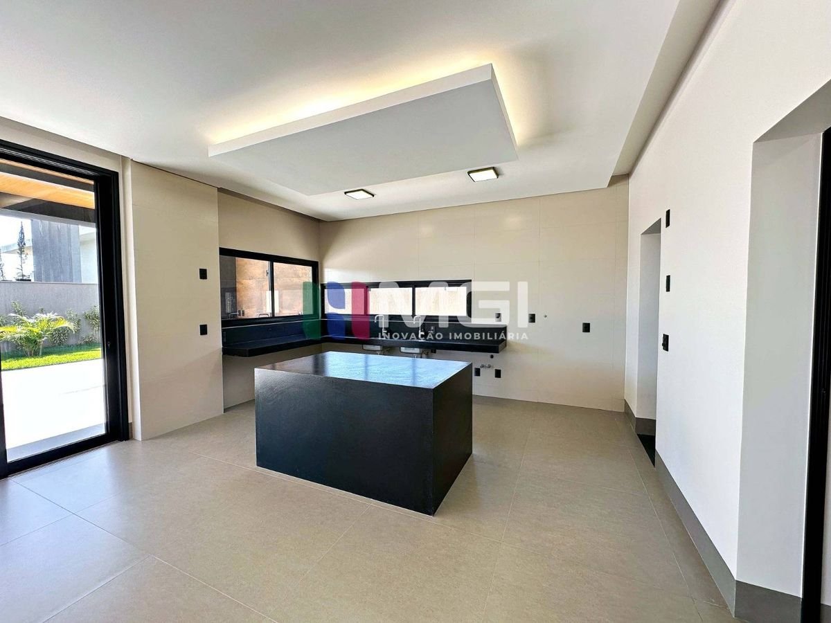 Sala de TV, jantar e cozinha integradas, além de hall com pé direito duplo.