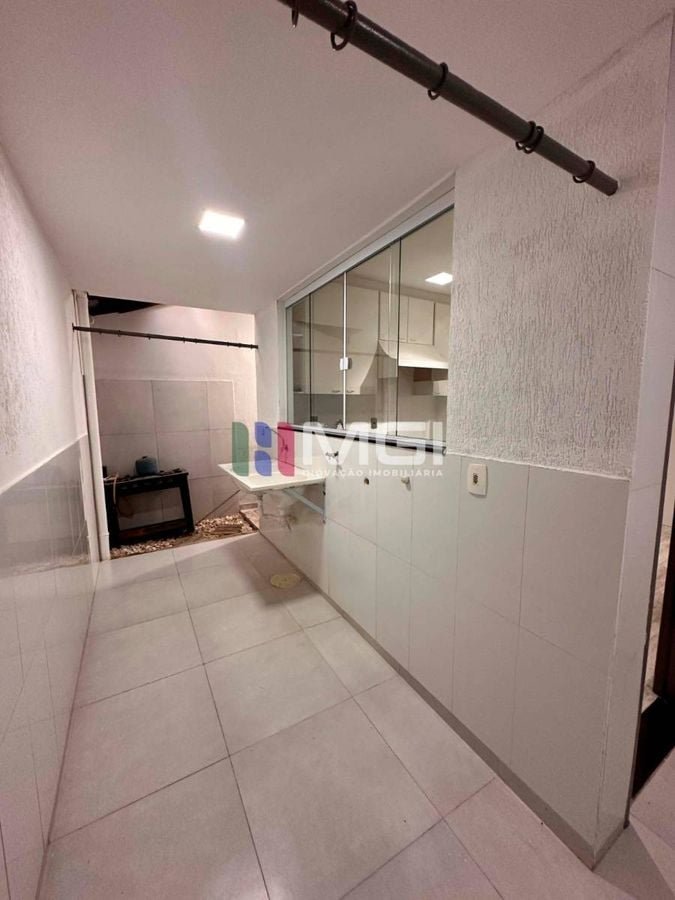 A varanda conta com churrasqueira e balcão de apoio, ideal para momentos de lazer.
