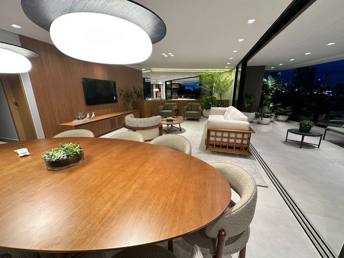 O número total de banheiros varia entre 5 e 6, considerando as suítes, o lavabo e o banheiro de serviço. As unidades contam com 3 vagas de garagem, e algumas plantas oferecem espaço adicional de depósito. As varandas são amplas, integradas ao living e à cozinha gourmet, proporcionando uma sensação de casa suspensa, com vista privilegiada e sol da manhã.