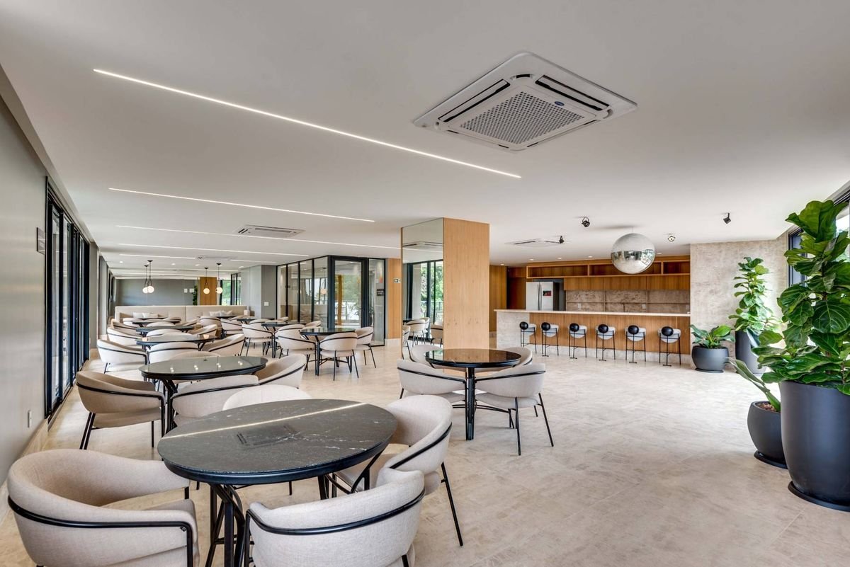 A área de lazer do Trya by Opus é completa e projetada para todas as idades. O condomínio oferece piscina adulto com raia, piscina infantil, deck molhado, academia equipada, espaço gourmet, salão de festas, brinquedoteca e playground, além de áreas verdes e espaços de convivência cuidadosamente planejados. Há também infraestrutura para carregamento de veículos elétricos, sistema de segurança de última geração e áreas comuns com design contemporâneo e elegante.